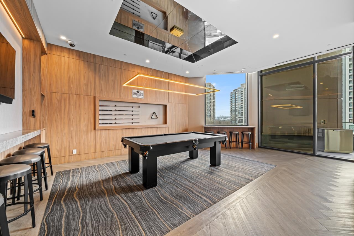 TRANSIT, WORK, PLAY, SOCIAL, SLEEP, ALL UNDER ONE ROOF. Welcome to Gilmore Place by Onni Developments. Directly above Gilmore Skytrain station & upcoming T&T Supermarket. Most comprehensive amenities: Swimming pool, hot tub, social lounge, study rooms, music rooms, guest suite, bowling, multiple gyms, golf simulator, karaoke, kids playrooms, dog grooming, dog park, bicycle wash & repair station, EV charging and more. Rest comfortably in your 742 sf apartment with heat pump A/C, SS appliances, and 2-bed 2-bath. Includes 1 parking, 1 storage locker & bike storage. Come experience Burnaby's fastest growing community! Easy to show.