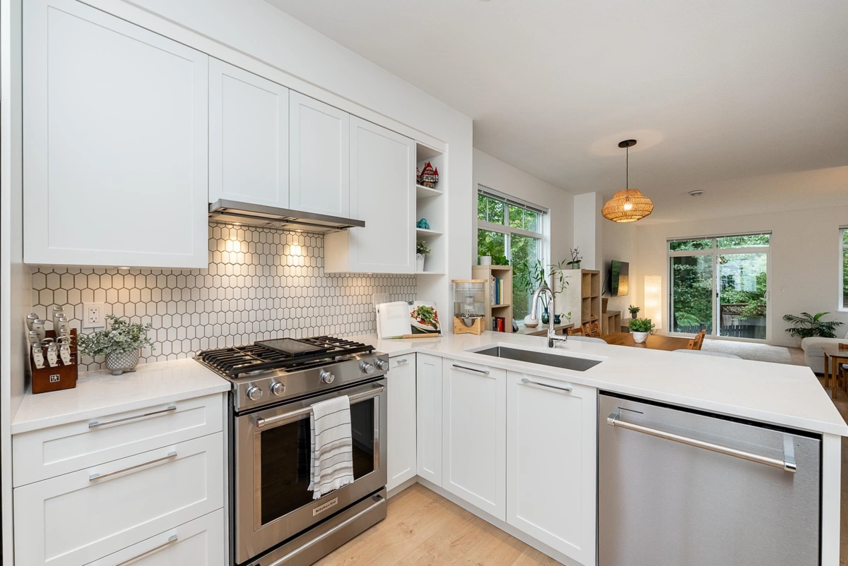 Welcome to Rocklin on the Creek! Beautiful end unit townhome backing onto a serene greenbelt! Offering 3 beds, 3 baths and 1,341 sq ft of living space w/picturesque views from all rooms! On the main enjoy 9 ft ceilings and oversized windows that stream in natural light. Thoughtfully designed kitchen w/quartz counters, gas cooktop + custom built-in cabinetry w/prep space. Dining and generous living seamlessly connect and step out to a private, fenced backyard with patio and gas BBQ hookup. Up are 3 beds including a vaulted-ceiling primary w/dbl closets and ensuite, plus laundry for convenience. Fully finished garage w/storage solutions, smart thermostats, blackout blinds for bedrooms. Surrounded by nature and trails, while being a short distance from schools, shopping, parks + recreation.