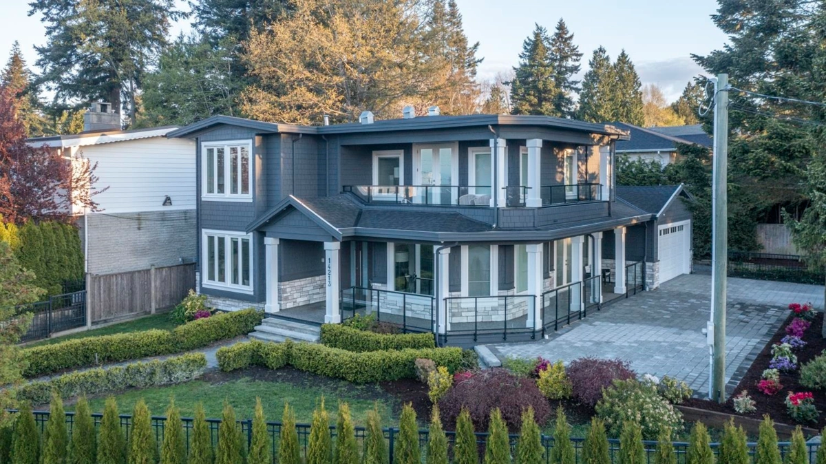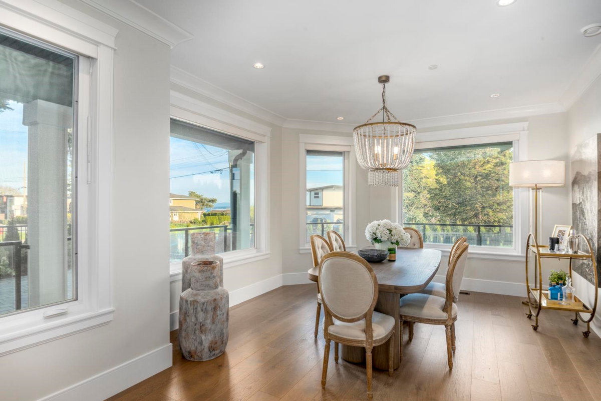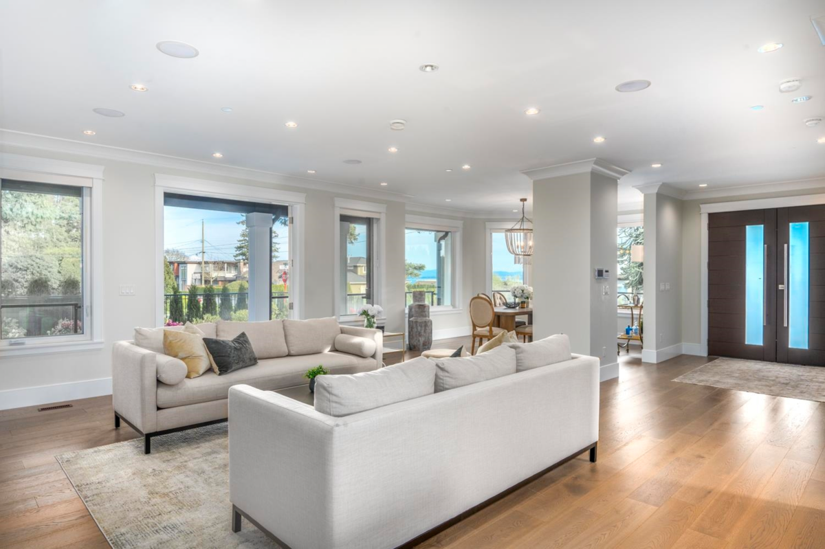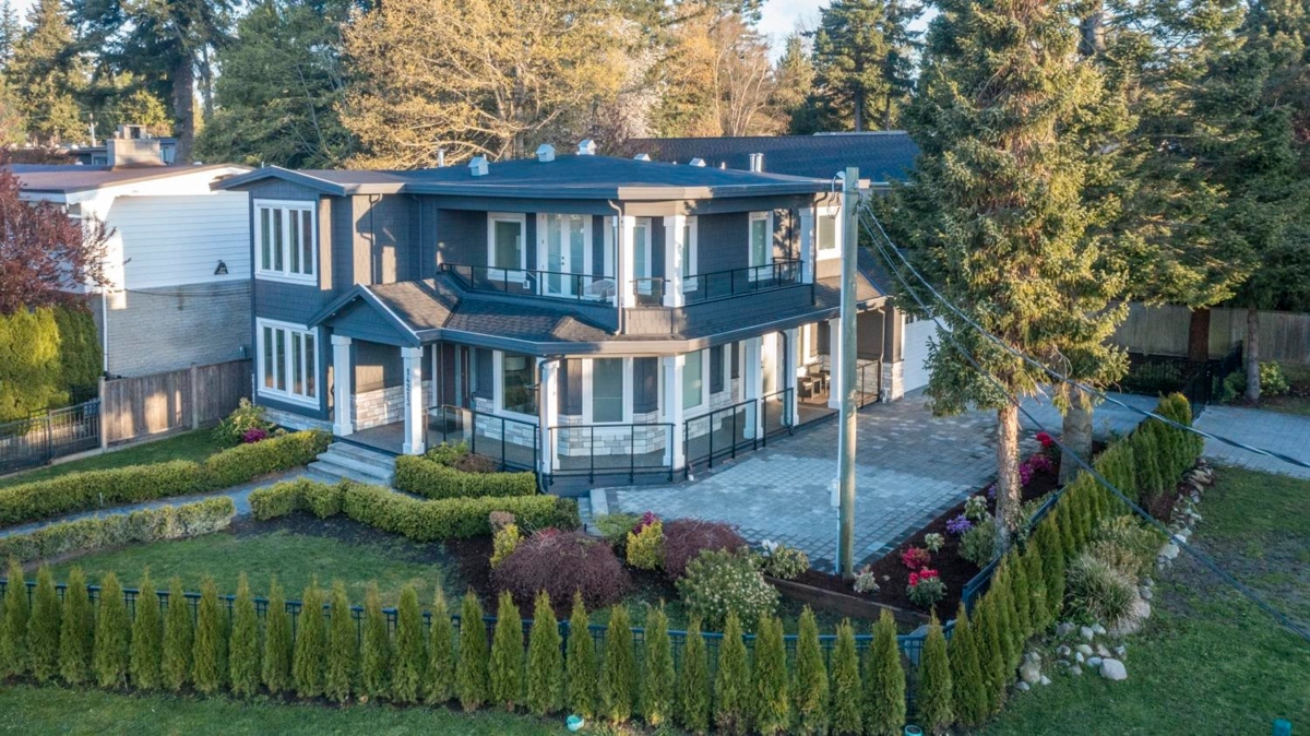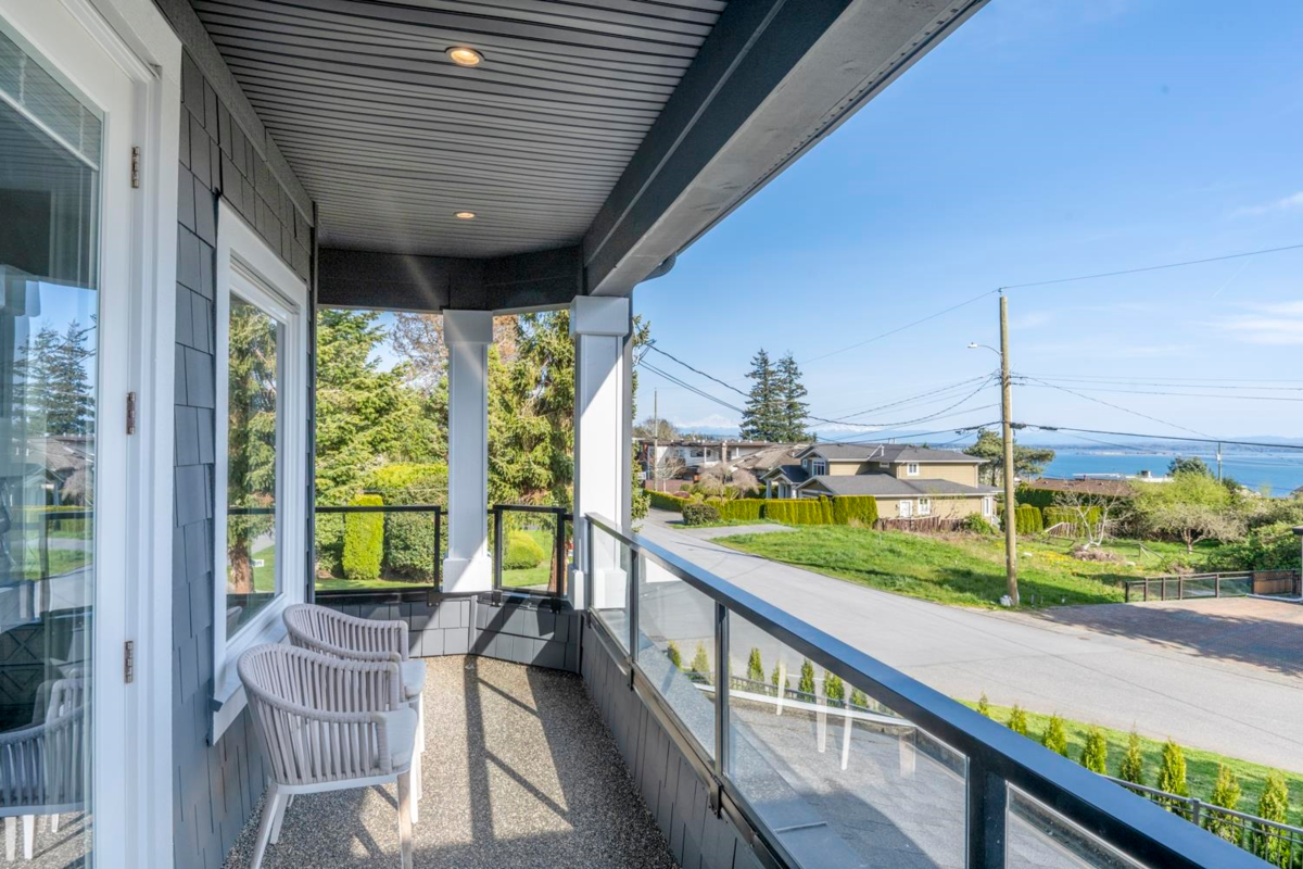 Welcome to this breathtaking Cape Cod inspired home situated in a quiet private neighborhood in White Rock! 5000 SF house with 6 bedrooms (includes 2 bedroom LEGAL SUITE) Large Office, Media Room, 3 Kitchens (including Wok Kitchen),7 bathrooms, Surrounded by beautiful trees, views of Ocean, Mount Baker and beyond. Bui1t in Entertainment Systems in Master, Living Room, Surveillance Camera System, automatic Blinds with Remotes, Air Conditioning, radiant Heat (3 levels) , Generator and Sprinkler system, auto gate, RV and boat parking. Endless Designer finishings, including hardwood and tile throughout. Semiahmoo Secondary Catchment. 5 minute drive to the Beach and is READY TO MOVE IN! Open House 2-4:30pm Sat Jan 24.