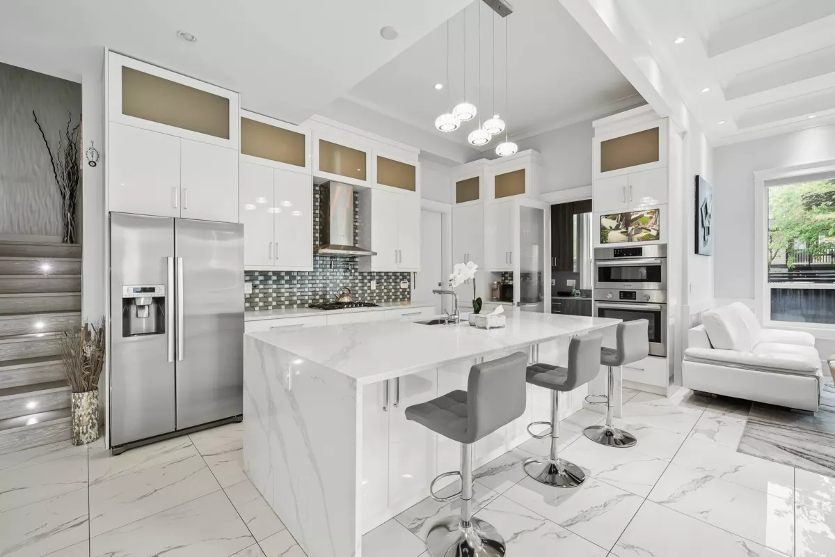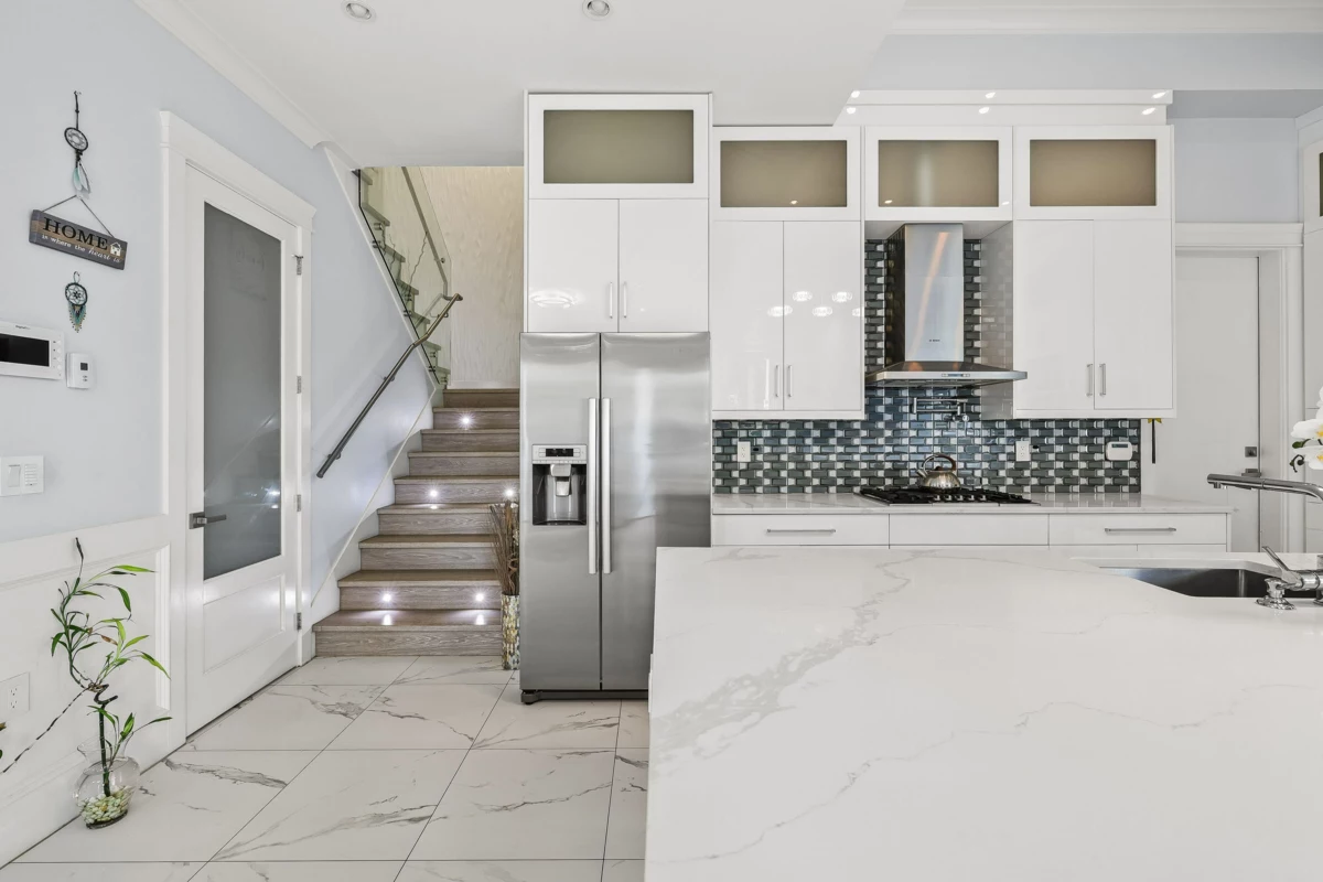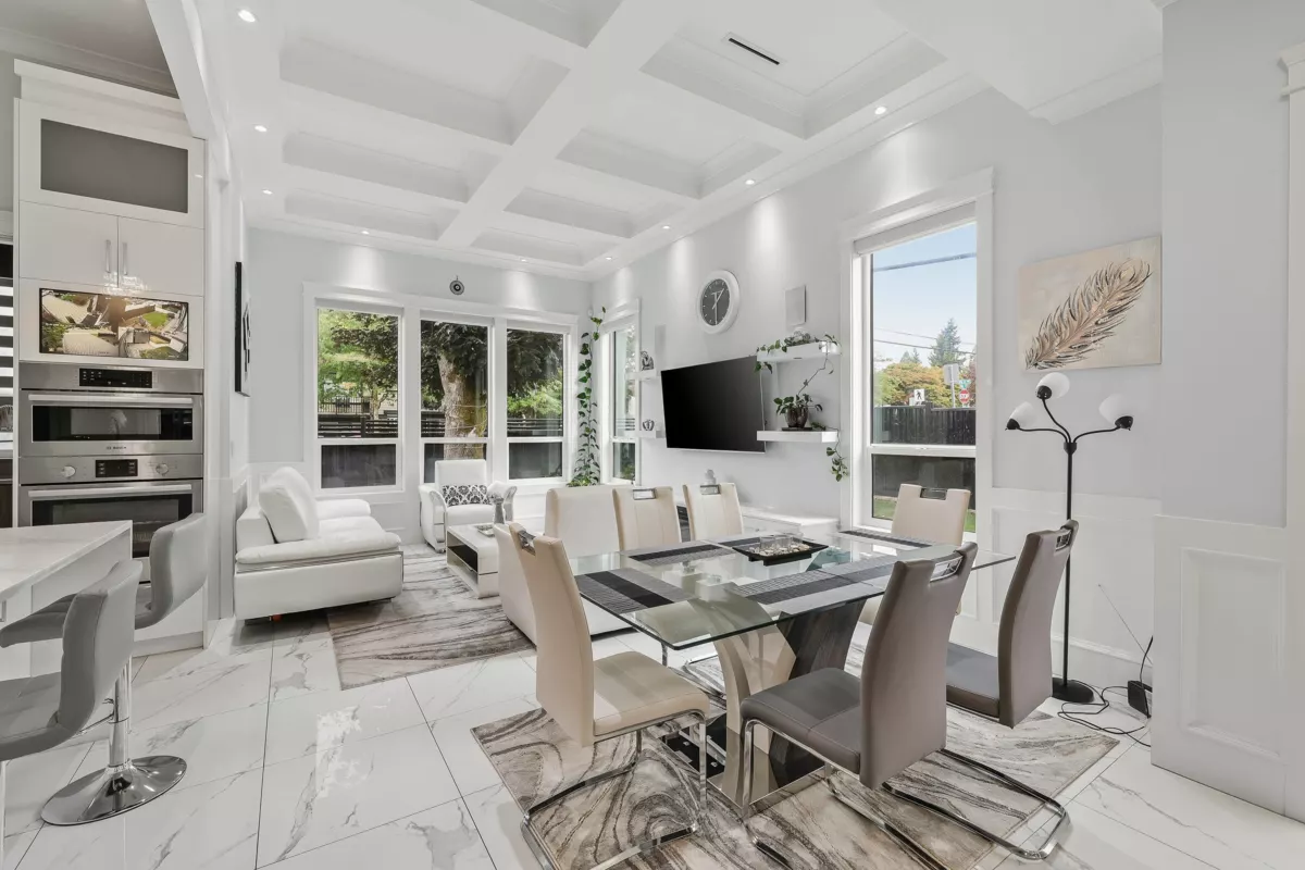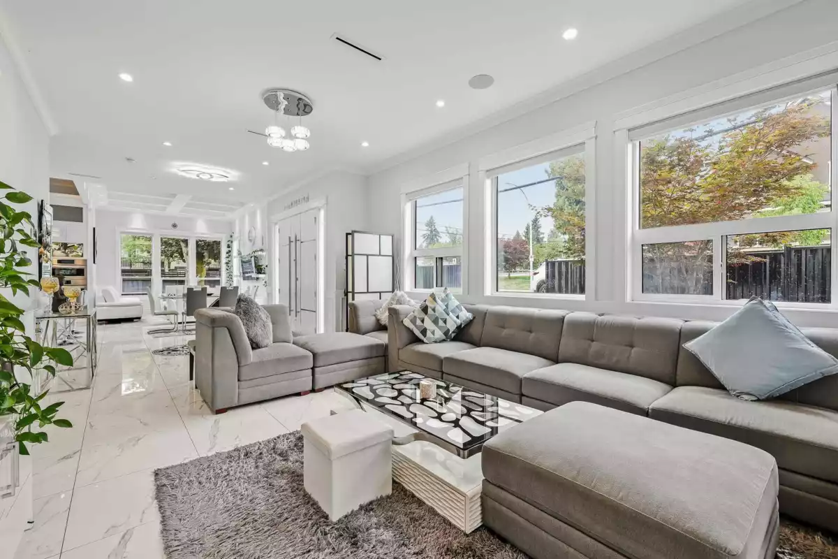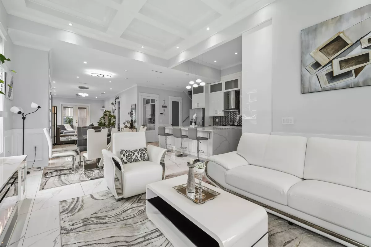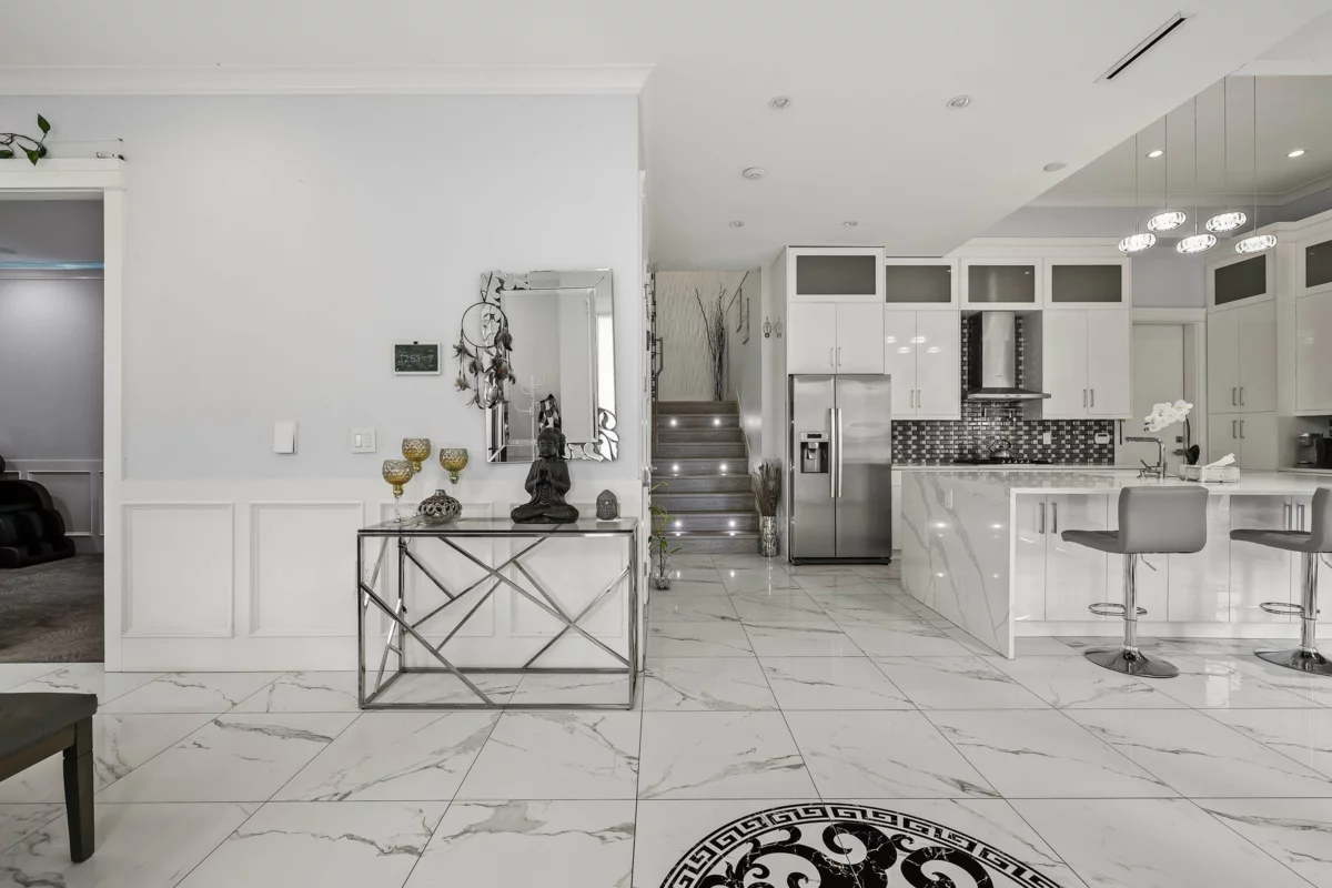 Stunning custom-built 7 bed, 6 bath home in the heart of Newton, featuring a 2-bed legal suite on a beautifully landscaped 7,304 sqft lot. Grand entry with 12’ ceilings and a custom crystal chandelier. Enjoy a gourmet kitchen with BOSCH appliances, quartz counters, and marble backsplash. Includes Control4 automation, built-in speakers, security cameras, A/C, HRV, and 2 fireplaces. Theatre and bar on the main, European tile flooring, built-in vacuums, and custom wardrobes throughout. Luxury, comfort, and functionality all in one!