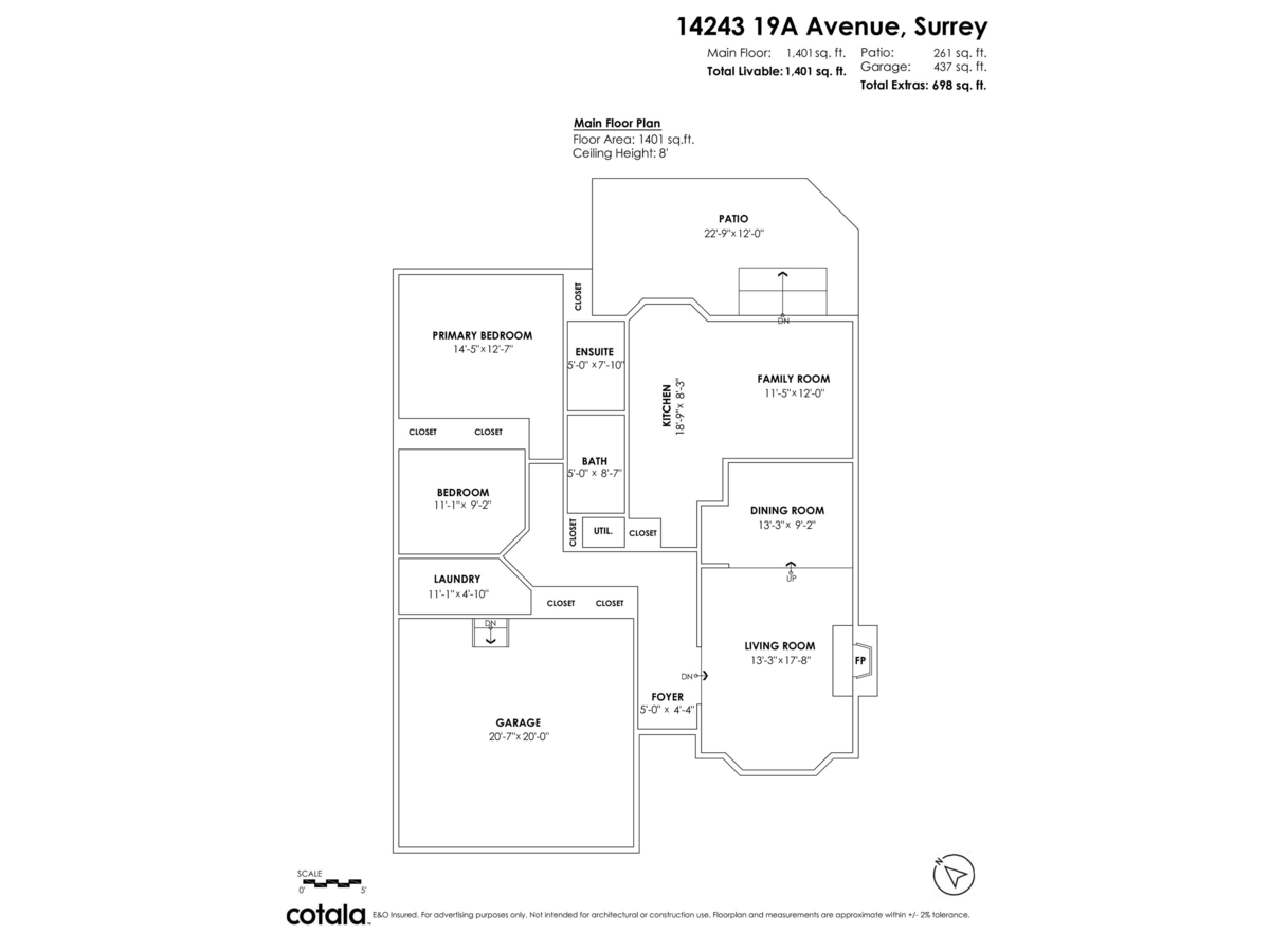 | Main Level | Primary Bedroom | 14'5 x 14'5 ft |