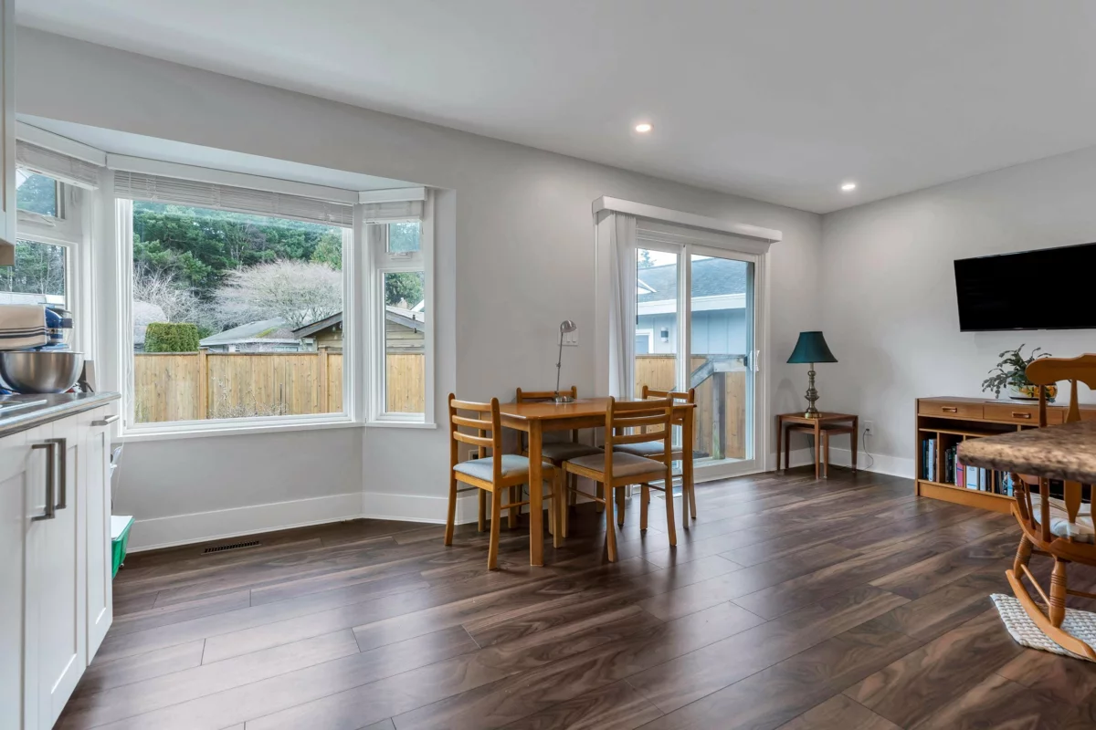 OCEAN BLUFF rancher in nice quiet location. Prime south facing CORNER LOT with fully fenced, gated backyard. Professionally landscaped & maintained. Only second owner. Updates include bright white kitchen with stainless steel appliances, beautiful walnut wide plank flooring, Hunter Douglas blinds, painting, plumbing and electrical. Cozy gas fireplace in Living Room. Double garage & driveway with extra visitor parking on the street. Walking distance to parks, trails, transit & shopping. Bayridge Elementary & Semiahmoo Secondary school catchment. Showings by appointment only.