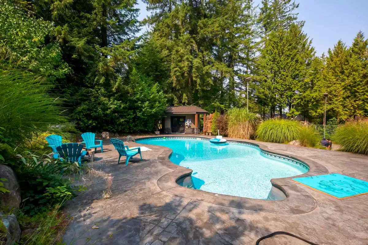 Located in a very Private Parklike Acres of Elgin Chantrell, South Surrey. This wonderful property has 3436 sqft living space on 1.08 Acres (47,010 sqft lot). It features 5 bedroom 3 bath, outdoor tennis court, outdoor swimming pool, Open Kitchen family room with expansive decks all overlooking the rear yard and pool. 3 bedrooms on the top floor, 2 bedrooms in the basement, including an office area and Gym. Plenty of outdoor entertaining areas including a spectacular outdoor covered deck for outdoor cooking/dining with seating around the Fireplace. Must see for appreciation.