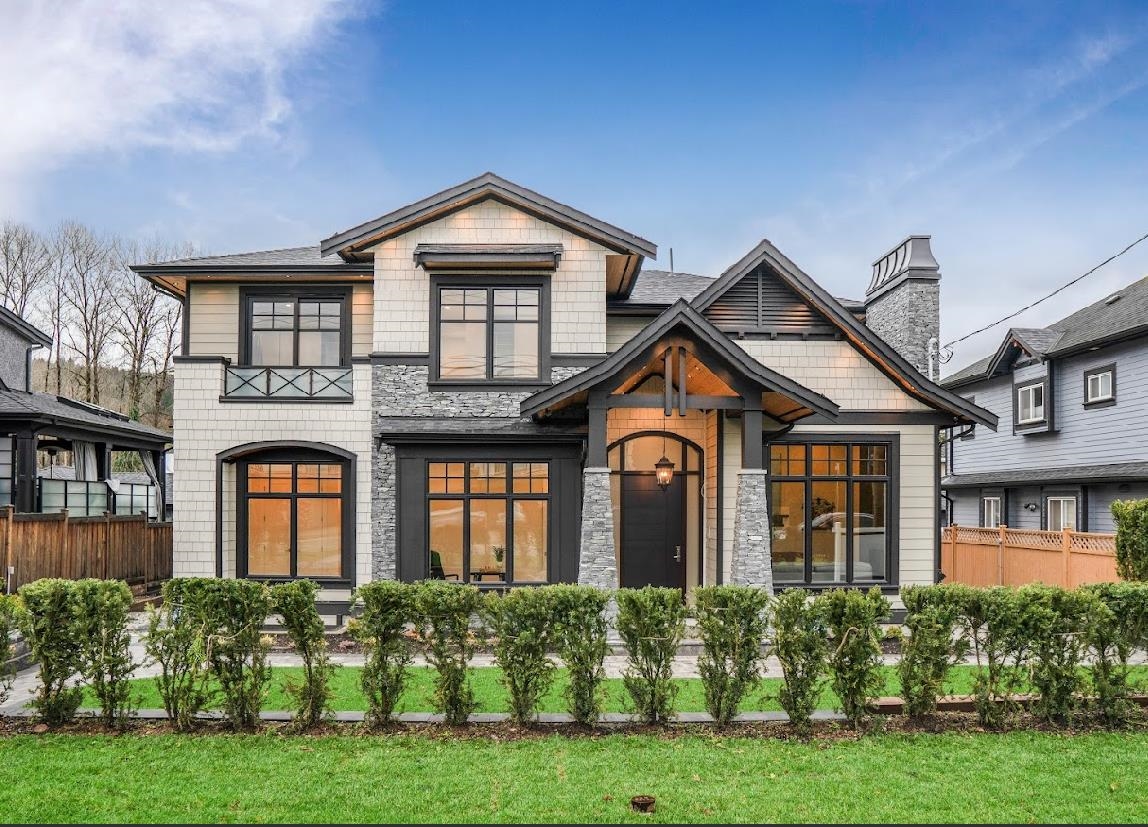 This exquisite custom home combine master craftsmanship with modern innovation. Soaring 10-12' ceilings, handcrafted maple stairs, and Italian wood-look tile create timeless elegance. The chef's kitchen features a 48" gas range, JennAir appliances, and Caesarstone quartz island, plus a spice kitchen with secondary fridge and hidden garbage compartments. The primary suite offers panoramic views and a spa-like ensuite, while 3 additional bedrooms each have private baths. The lower level includes a home theater and legal 2-bed suite with separate entry - perfect for rental income or guests. Smart home tech, spray foam insulation, mould-resistant bathrooms, and backup power ensure comfort and efficiency. Close to SFU & Brentwood Mall. A rare blend of beauty, function, and future-ready living.