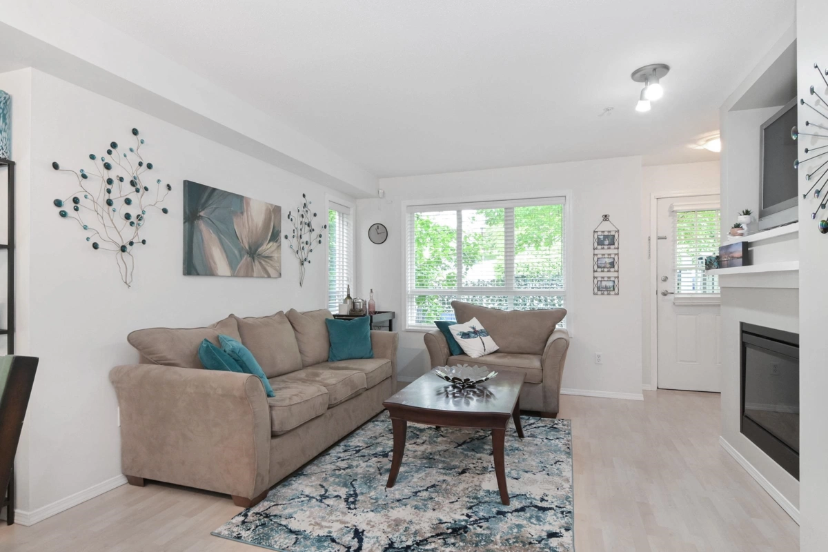 Bright END unit is flooded with natural light through the large windows. Location is ideal as unit faces onto greenbelt/creek. The walk-out back yard from the main level, is perfect for gatherings in the evening, and the front balcony is a place to relax with your morning coffee. Pride of ownership shines through in this meticulously cared for unit with newer appliances, new flooring in bathrooms and newer hot water tank. Comes with 3 parking spaces and a large area at back of garage for a workshop or storage. Desirable Sagebrook community has a large clubhouse with an indoor hockey room, gym, and outdoor swimming pool and hot tub. Close to all amenities like shopping, restaurants, transit and parks. Must See