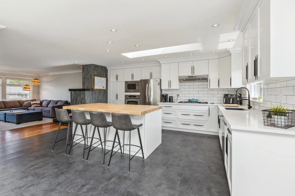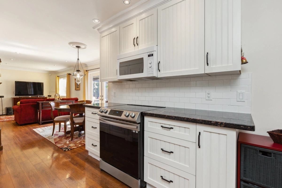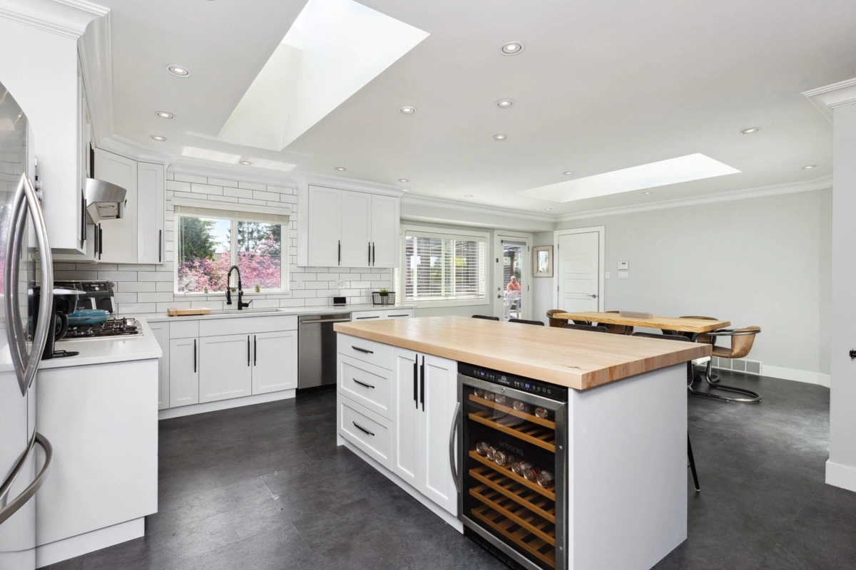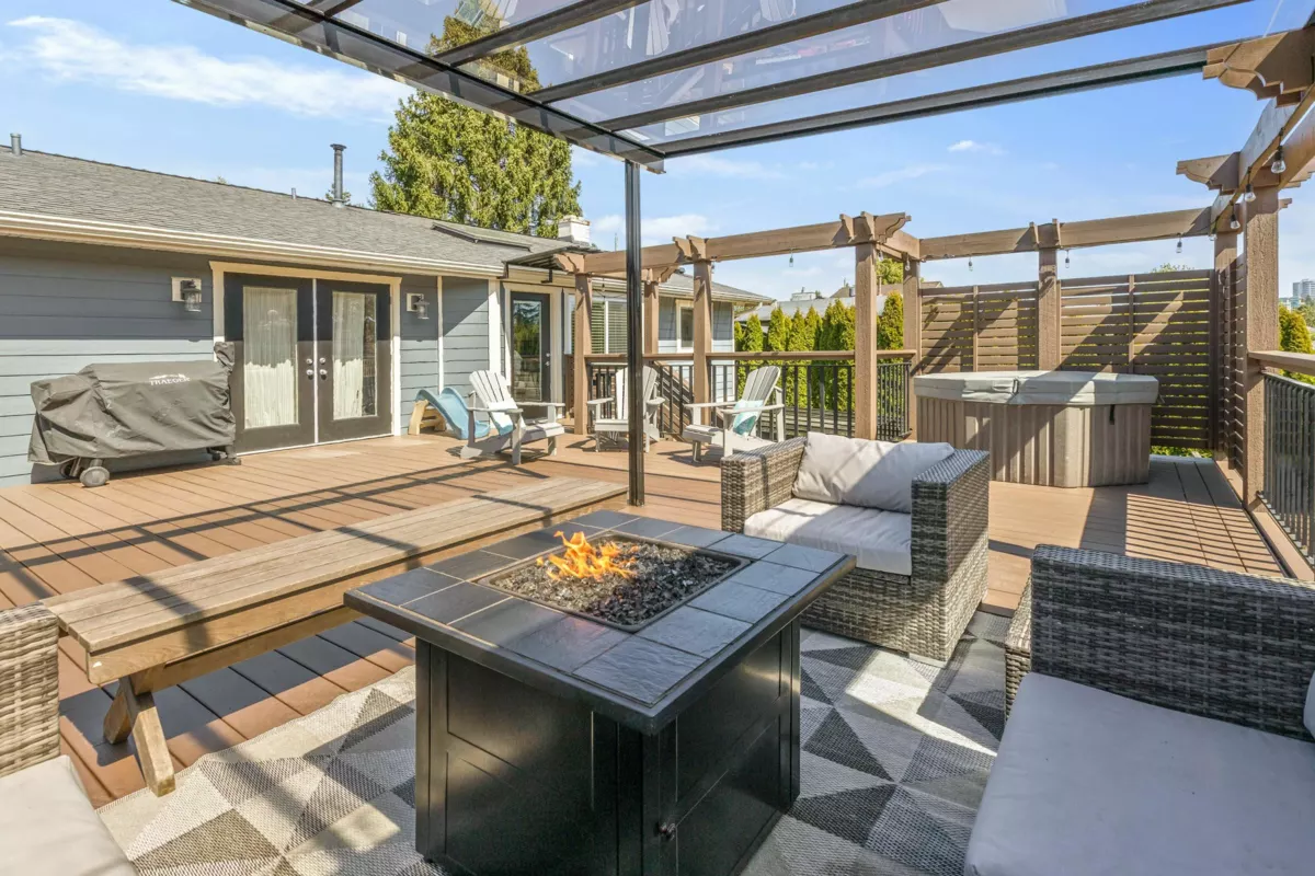 Sunnyside stunner! This fully renovated 6 bed, 3 bath home is spotless, move-in ready, and shows true pride of ownership throughout. Gourmet kitchen features gas stove, built-in oven & microwave, beverage fridge, quartz counters, and high-end appliances. Private 2-bed executive suite with separate entry and heat—ideal for in-laws or rental income. Enjoy a sunny south-facing yard, private outdoor living areas, hot tub, workshop, shed, alley access, and large double garage. Upgrades include new windows, crown mouldings, hardwood floors, 200 AMP service, central A/C, newer furnace, and rain-screened stone/concrete siding. Quiet yet central location in Bayridge & Semiahmoo school catchments. Perfect to live, invest, or share. Book your showing today.