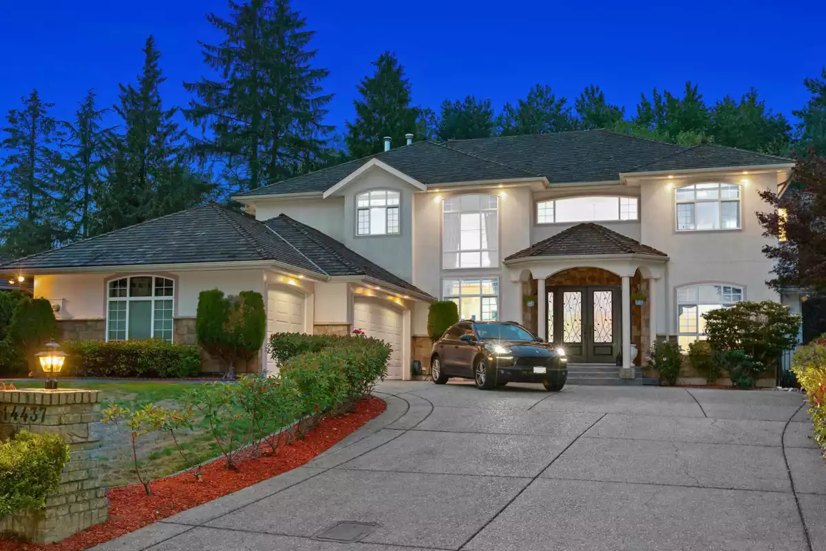 British Manor's 5500+ sqft trophy estate property on 1/3 acre! This custom-built residence is being offered on the market for the first time. The property is nestled on a quiet greenbelt offering a park-like setting, a luscious manicured garden & extended driveway. This home has been very well maintained by the original owners, maintaining its architectural integrity while seamlessly blending modern luxury & old world charm. The dramatic two-story foyer & principal room impress upon entry. The upper level primary suite features french doors, a Juliet balcony, 2 walk in closets, & a 5 piece spa ensuite. 3 add'l bedroom suites & linen room are situated nearby. Features: theatre w/ auto screen, office w/ double height windows, gym, full kitchen on the lower level, a triple bay garage, & more.
