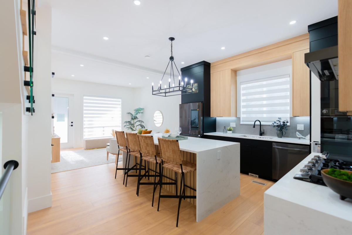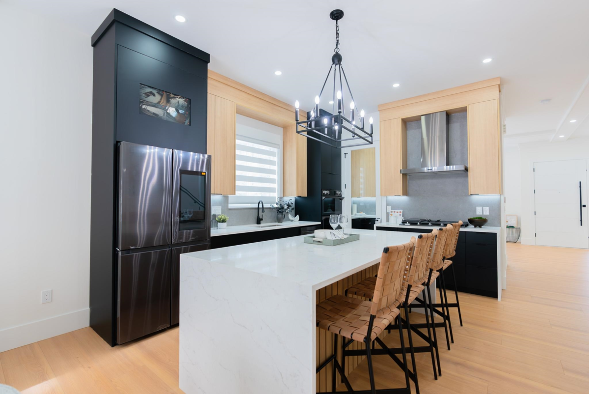 Welcome to 14446 60th Avenue in Surrey, BC—a beautifully designed home offering over 4100 sqft of elegant living space. The open-concept main floor features a bold, modern kitchen that flows seamlessly into the family room, along with a convenient bedroom and bathroom. Upstairs, you'll find four spacious bedrooms, three bathrooms, and a laundry room. The master suite impresses with a striking accent wall, a generous walk-in closet, and a stylish double vanity ensuite. With a total of eight bedrooms and six bathrooms, this home perfectly blends luxury and practicality. 2+1 Mortgage Helper. Book your private showing today !
