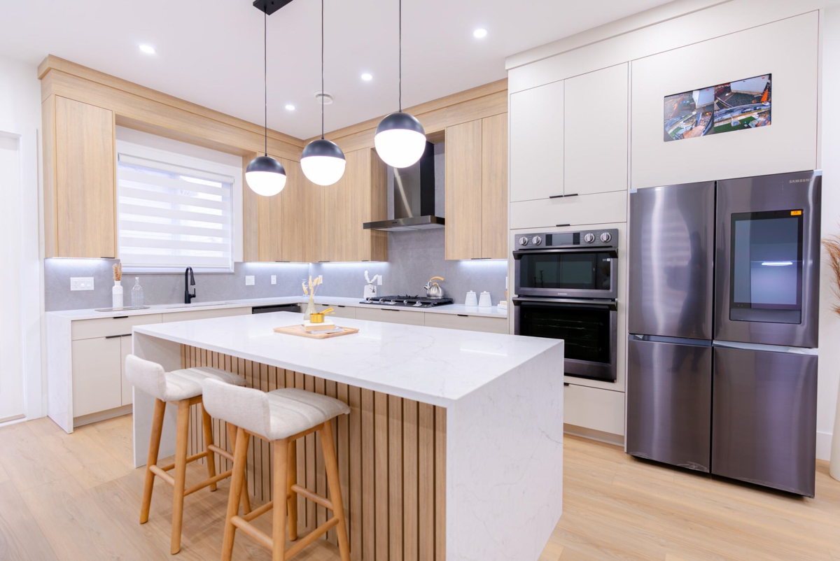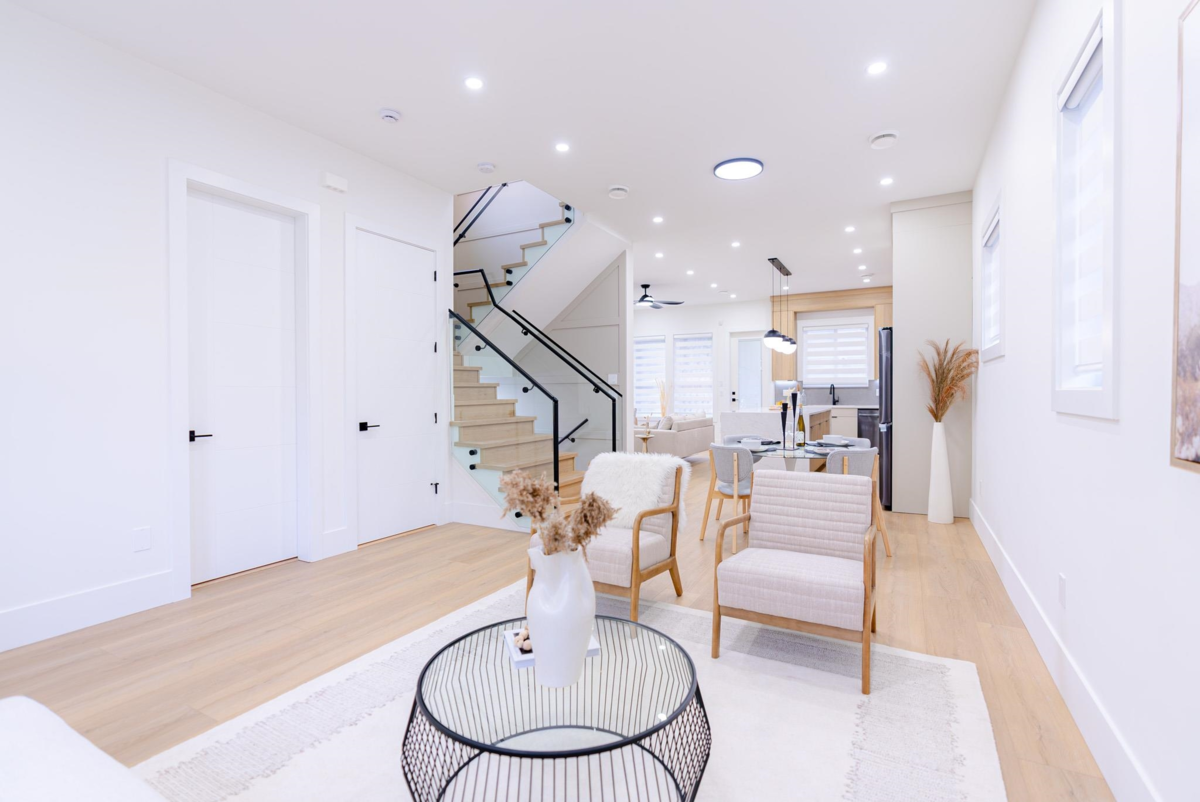 This Brand New Quality Built 3-storey home offers 5 bedrooms + Flex Room, 4 bathrooms, and over 2,500 sq. ft. of beautifully designed living space. The main floor features an open-concept layout with a stunning kitchen, marble-like backsplash, and a walkout covered deck—perfect for year-round entertaining. The upper level includes a spacious primary bedroom with a spa-like ensuite, walk-in closet, and an additional 2 spacious bedrooms plus a den/flex space. The lower level has a very spacious legal 2-bedroom suite, ideal for rental income or extended family. Additional features include air conditioning, security system, and roughed-in EV charger. Centrally located near top schools, shopping, YMCA, and public transit. Easy to show. Book your private showing today !