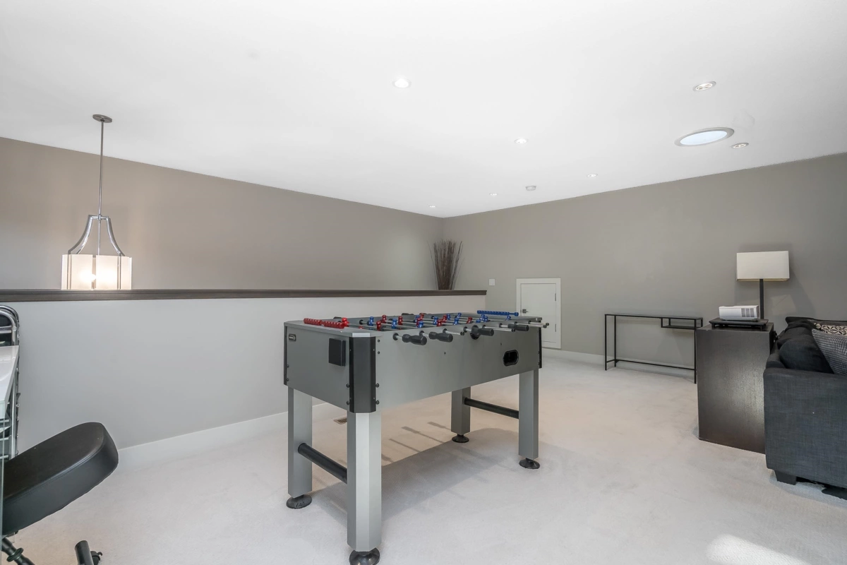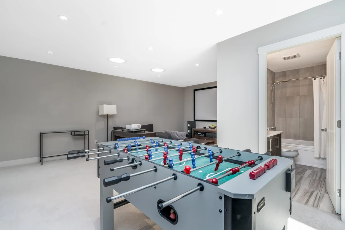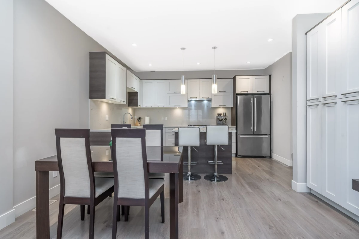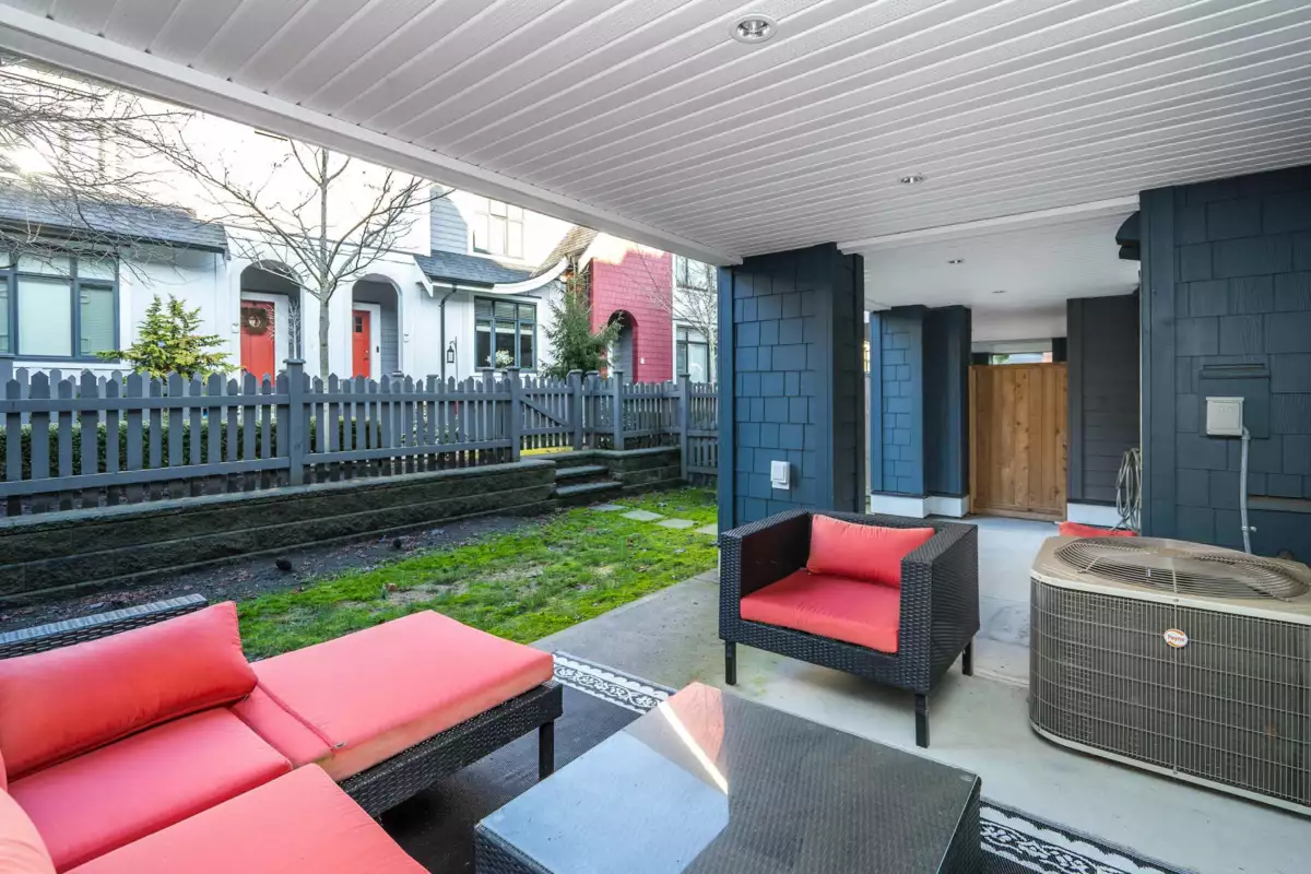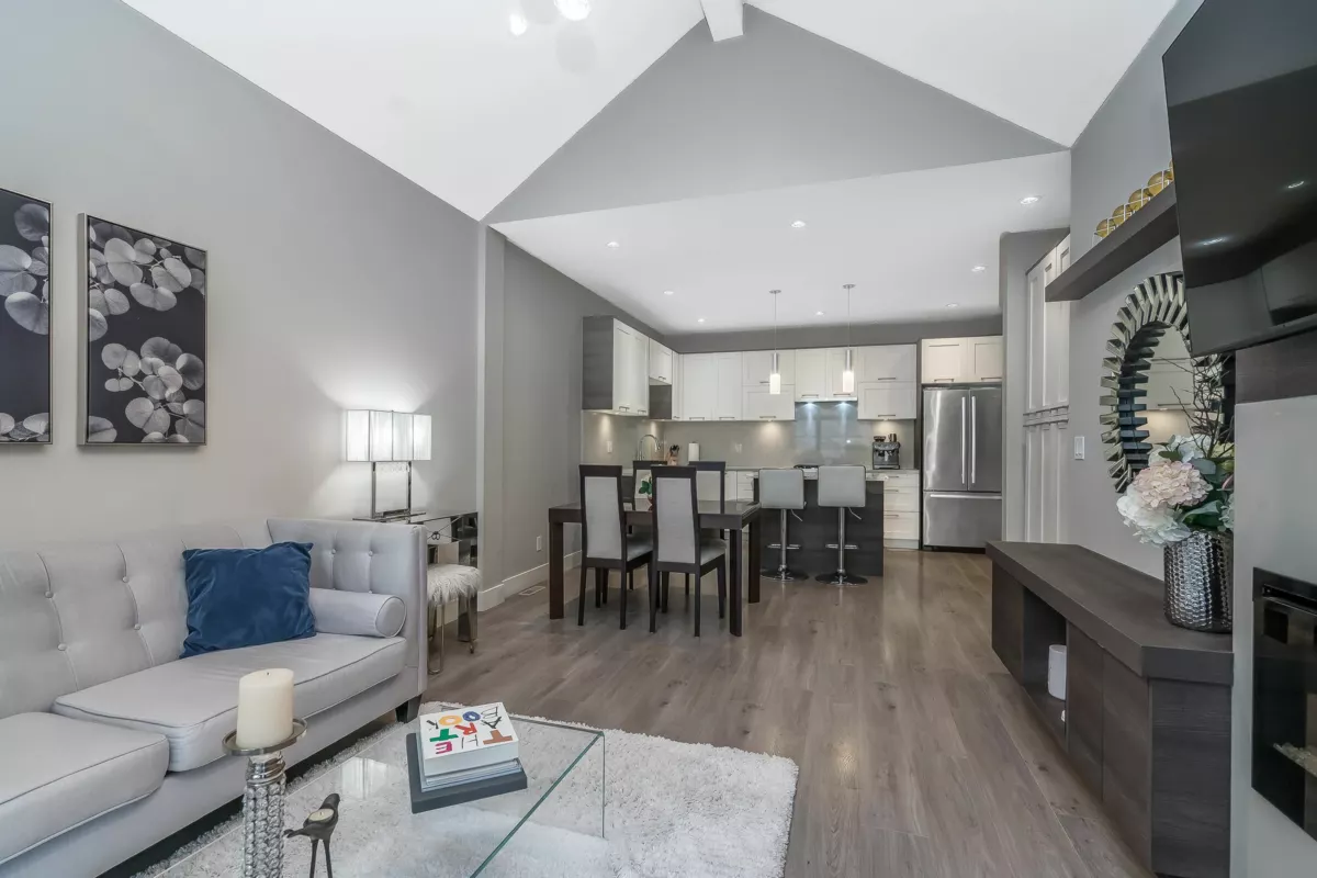 Welcome to Hyde Park — a spacious 4 bed, 4 bath townhome backing onto quiet greenspace in one of South Surrey’s most desirable communities. This 3-level home offers vaulted ceilings, a bright open main living area, and a modern kitchen with granite counters and stainless steel appliances. Stay comfortable year-round with A/C, and enjoy indoor-outdoor living with a large balcony plus a private fenced patio and yard below. The primary suite includes a beautiful ensuite with heated floors, while upstairs features two additional bedrooms and a versatile loft/flex space. The lower level includes a rec room with wet bar, a 4th bedroom, and a full bath — perfect for guests or extended family. Resort-style amenities include a clubhouse, media room, playground, and more.