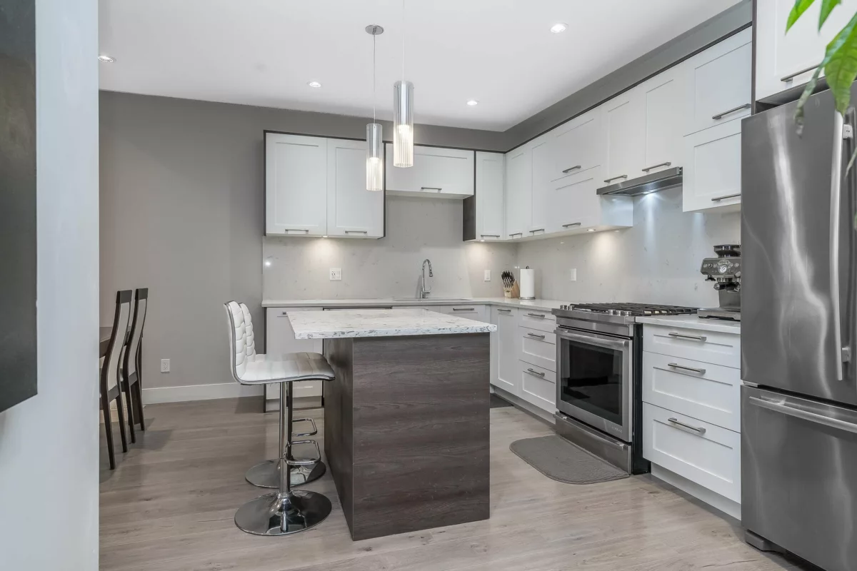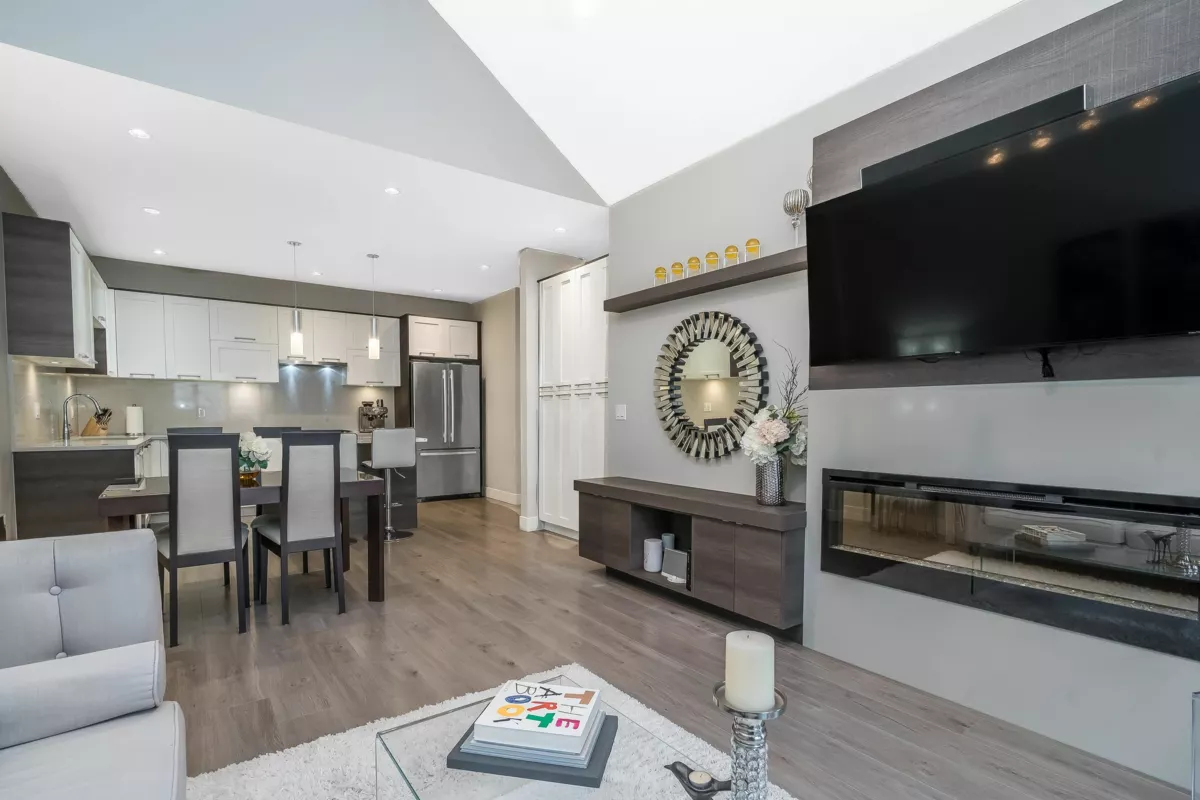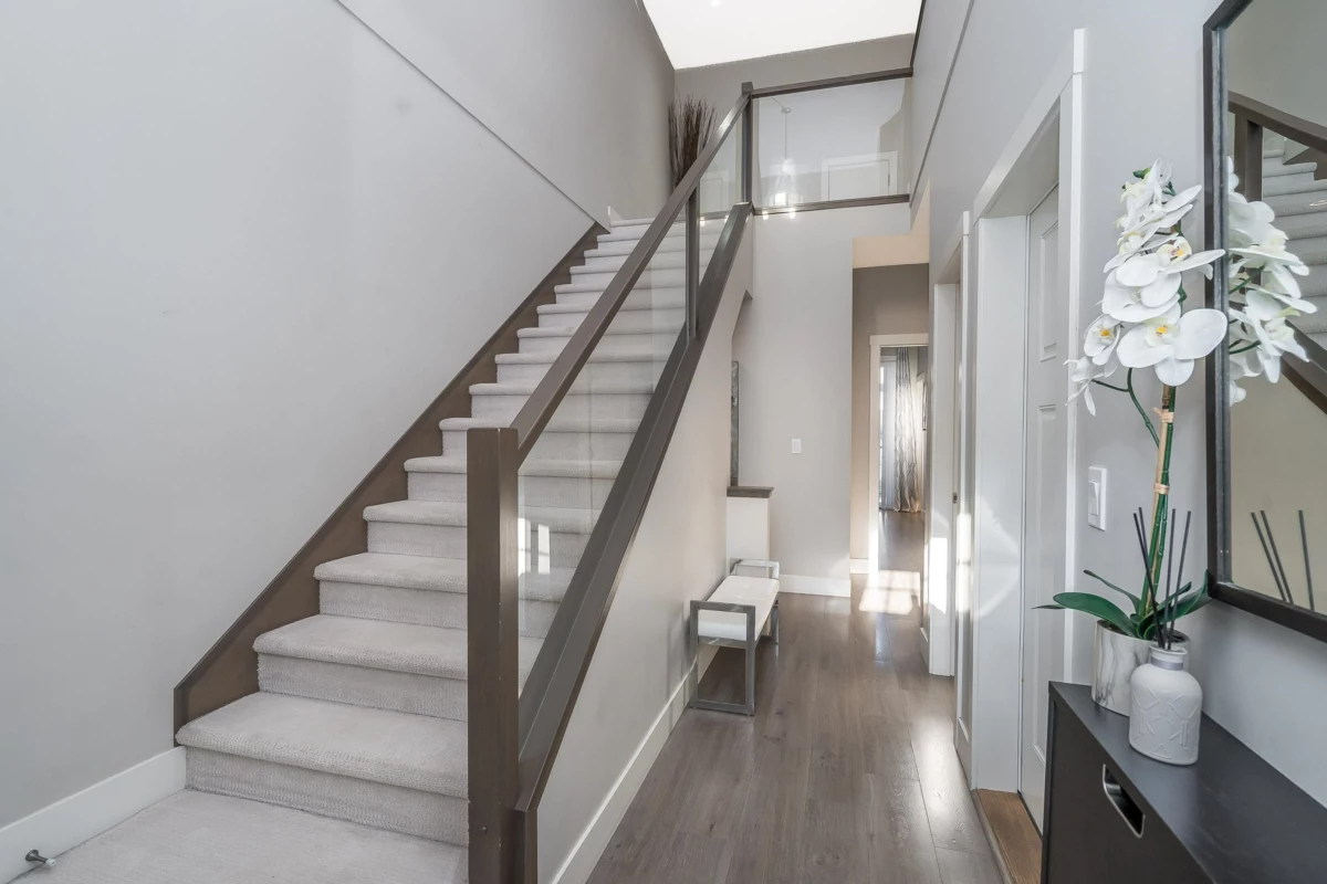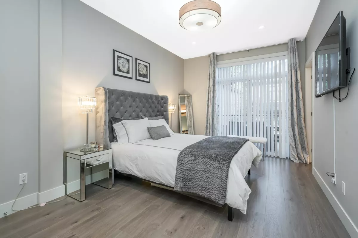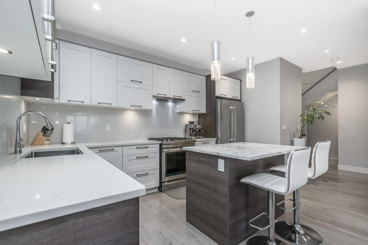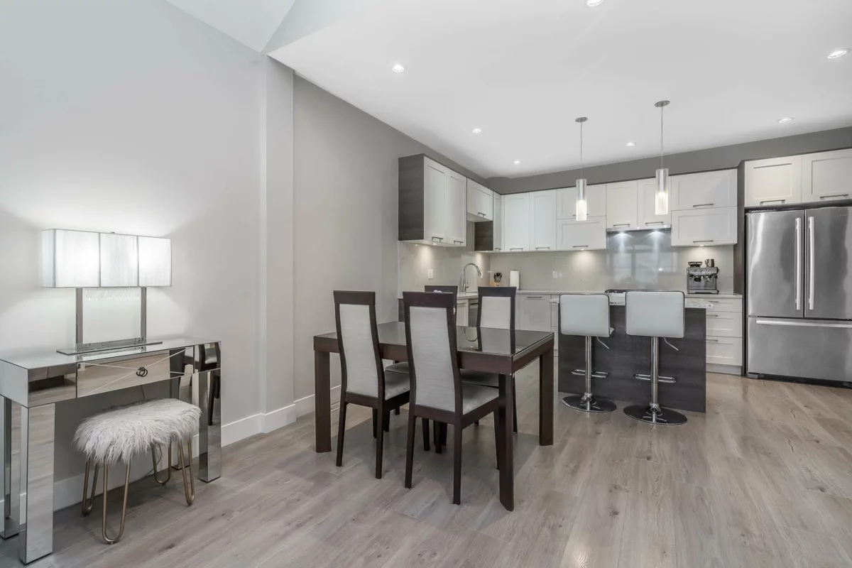 Welcome to Hyde Park — a spacious 4 bed, 4 bath townhome backing onto quiet greenspace in one of South Surrey’s most desirable communities. This 3-level home offers vaulted ceilings, a bright open main living area, and a modern kitchen with granite counters and stainless steel appliances. Stay comfortable year-round with A/C, and enjoy indoor-outdoor living with a large balcony plus a private fenced patio and yard below. The primary suite includes a beautiful ensuite with heated floors, while upstairs features two additional bedrooms and a versatile loft/flex space. The lower level includes a rec room with wet bar, a 4th bedroom, and a full bath — perfect for guests or extended family. Resort-style amenities include a clubhouse, media room, playground, and more.