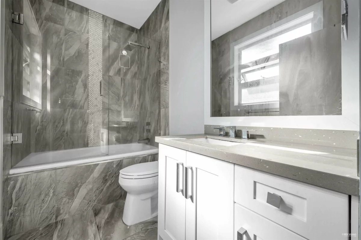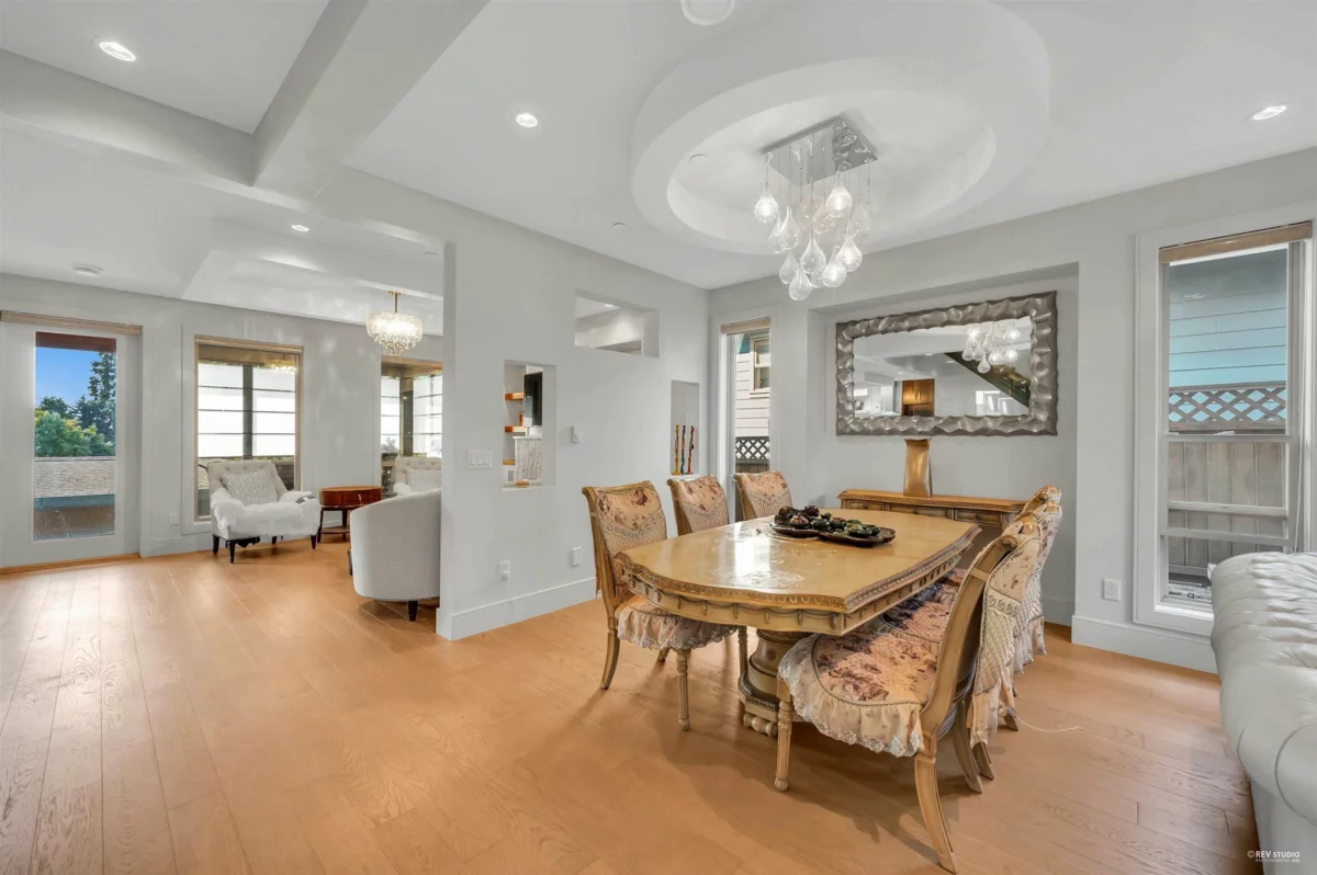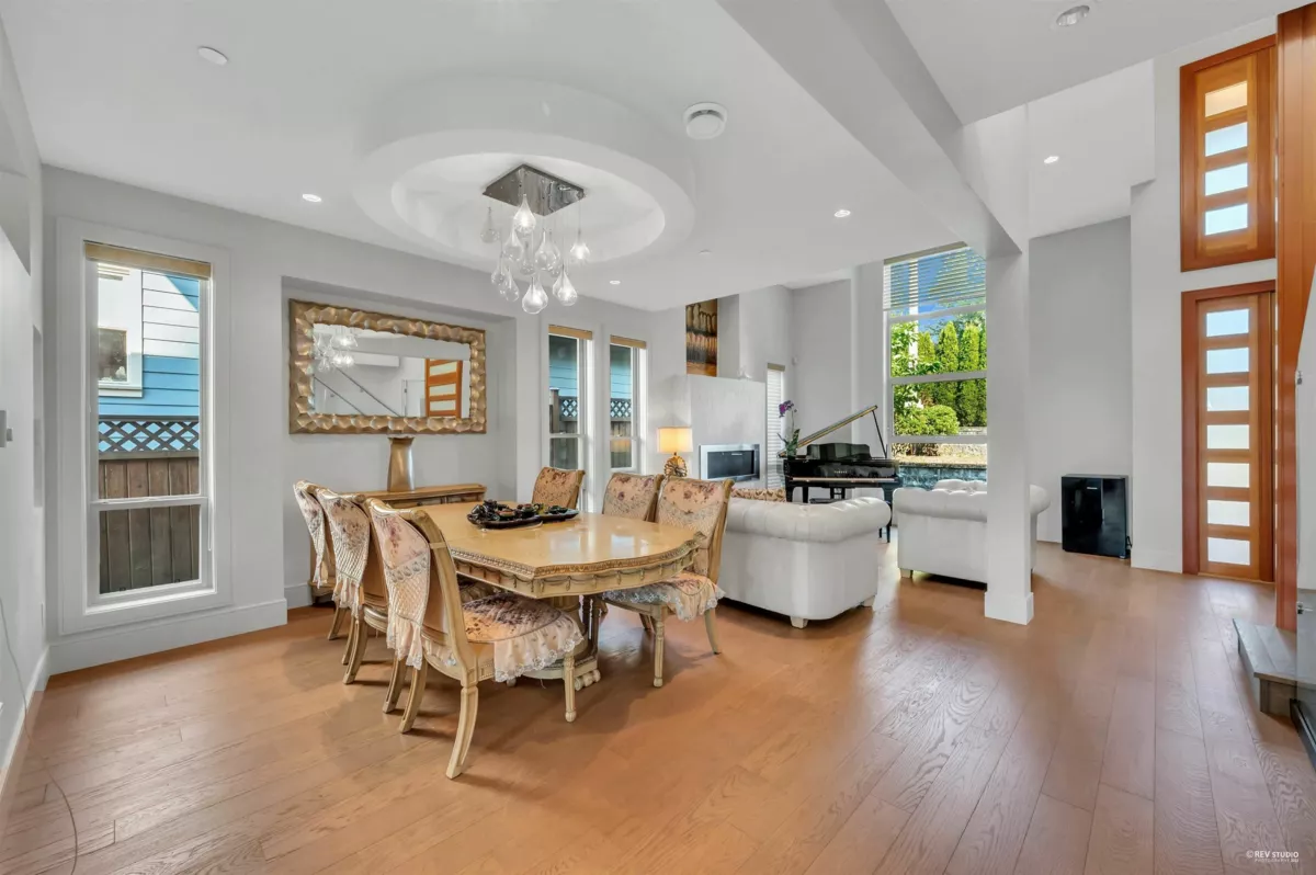 This luxurious 7-bedroom, 8-bathroom contemporary residence offers over 4,000 sq.ft. of refined living space with thoughtful design and exceptional craftsmanship. The main level features a spacious open layout with grand ceilings, elegant hardwood floors, and a gourmet kitchen with wok kitchen—perfect for entertaining family and guests. A legal 2-bedroom suite with a separate entrance provides excellent rental income or in-law accommodation. Upstairs showcases three generously sized ensuite bedrooms, while the lower level includes a media room, gym, and wet bar for ultimate comfort and leisure. With four laundry areas, a laneway house attached to a double garage, and radiant heating throughout, this home blends modern luxury with functional versatility.