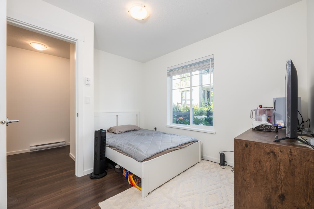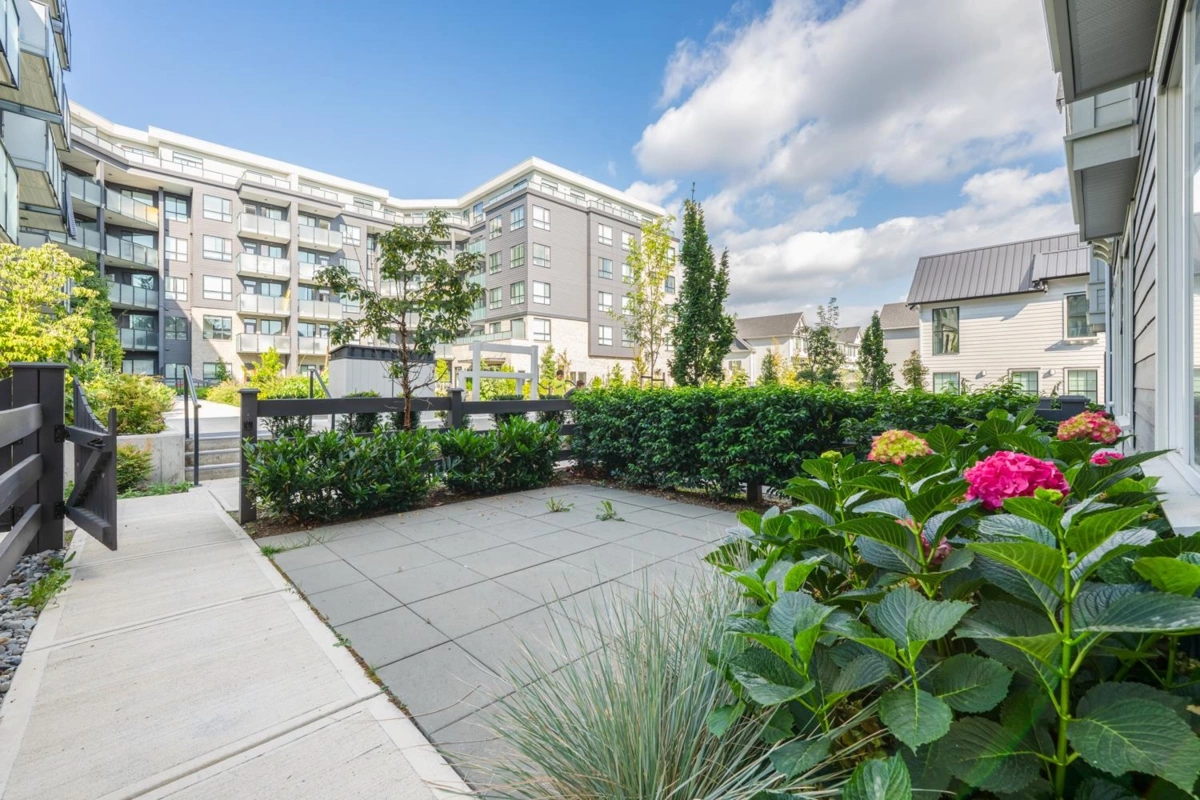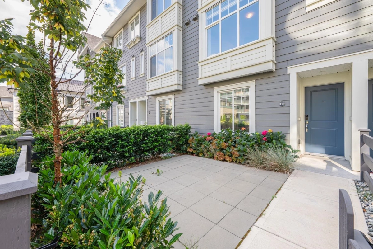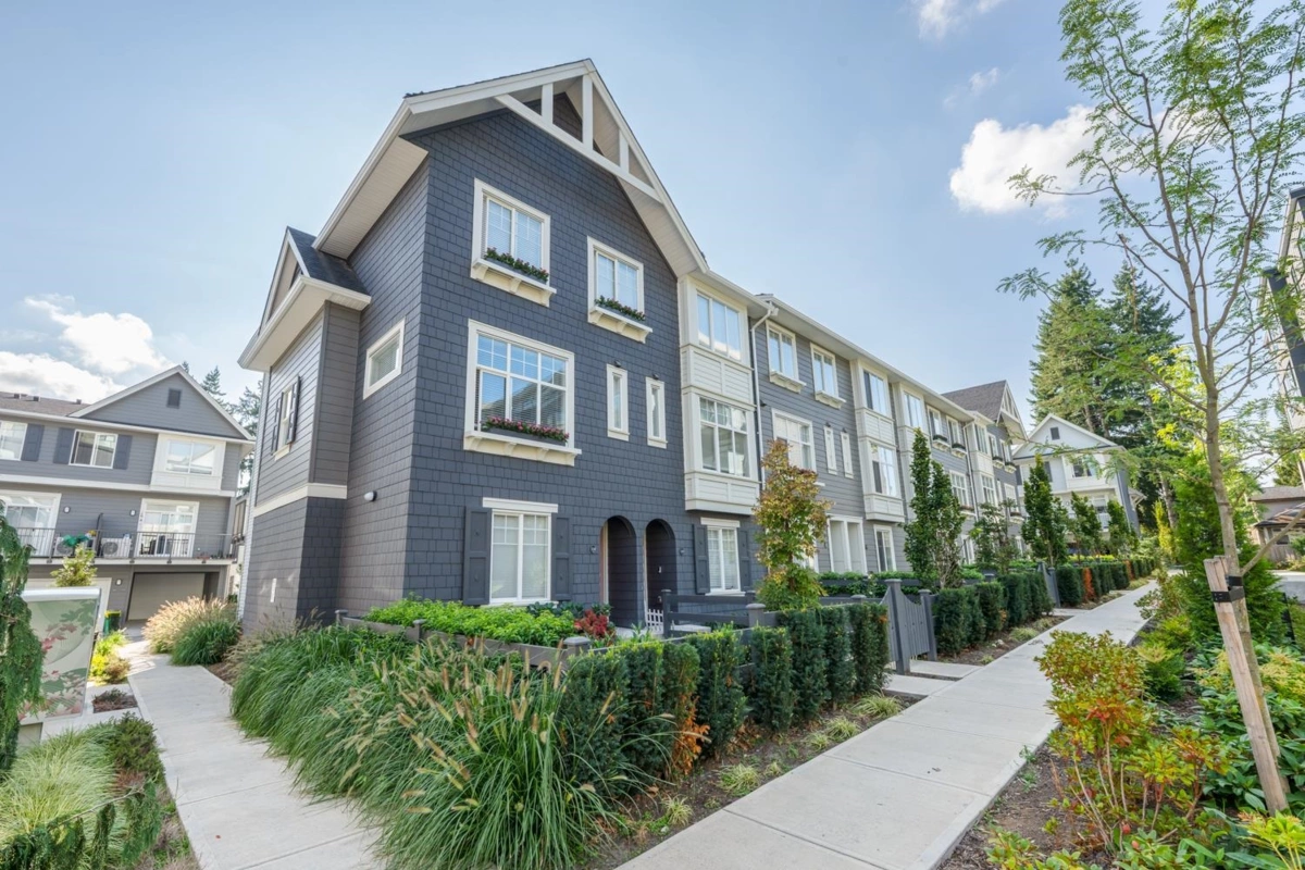 Air-conditioned smart home with biometric lock! Located directly along the new Surrey-Langley Skytrain extension and just steps from shopping, restaurants, parks, and schools. This spacious INSIDE unit offers a residential LAWN VIEW and features a fenced & gated front yard with a bedroom and full bathroom on the garden level - perfect for guests or a home office. Enjoy 10' ceilings in the sunken living room, leading up to a bright, open-concept kitchen with a large unobstructed island. Upstairs features a primary suite that fits a king-sized bed, walk-through closets, and a private ensuite with double vanity and oversized shower. Includes side-by-side double garage. School catchment: Walnut Road Elementary and Fleetwood Park Secondary. Book your showings now!
