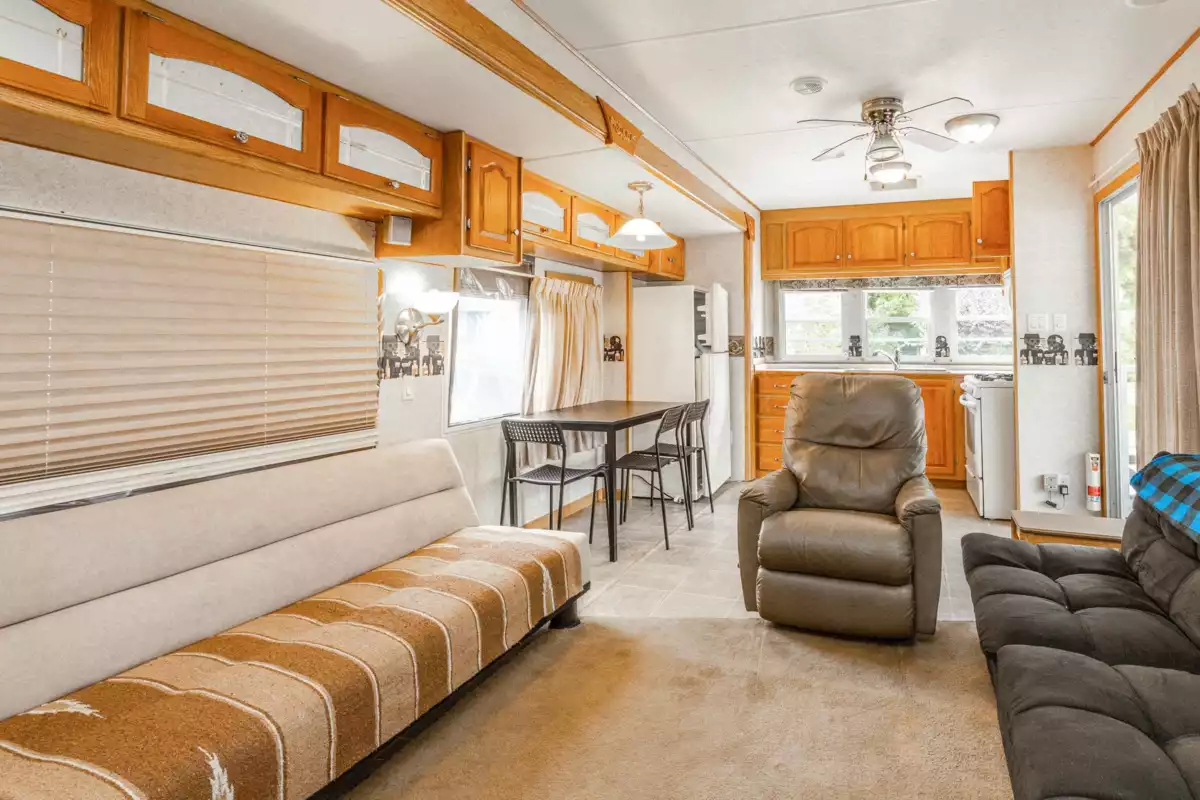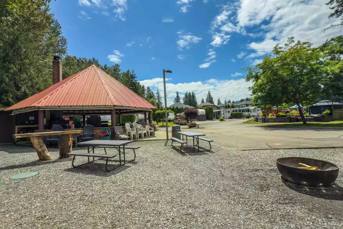 Where the air is fresh and the eagles soar, welcome to Tapadera Estates-a peaceful, gated, year round recreation community. This is a rare opportunity to OWN a 1650 sq ft strata lot, worry free from rental agreements or leases. A low monthly strata fee covers community maintenance and an impressive, recently renovated rec center offering a large indoor pool, outdoor hot tub, gym and rec room with a full kitchen. Outdoor community rec space includes a grass area great for gatherings, an outdoor gazebo and firepit area as well as a quaint path and launch area for canoeing or kayaking the river. The sale includes a well cared for 2004 park model style RV with covered deck and shed. Enjoy nearby Sandpiper golf, Hemlock ski resort, Sasquatch Inn, ATV and hiking trails and breathtaking views!