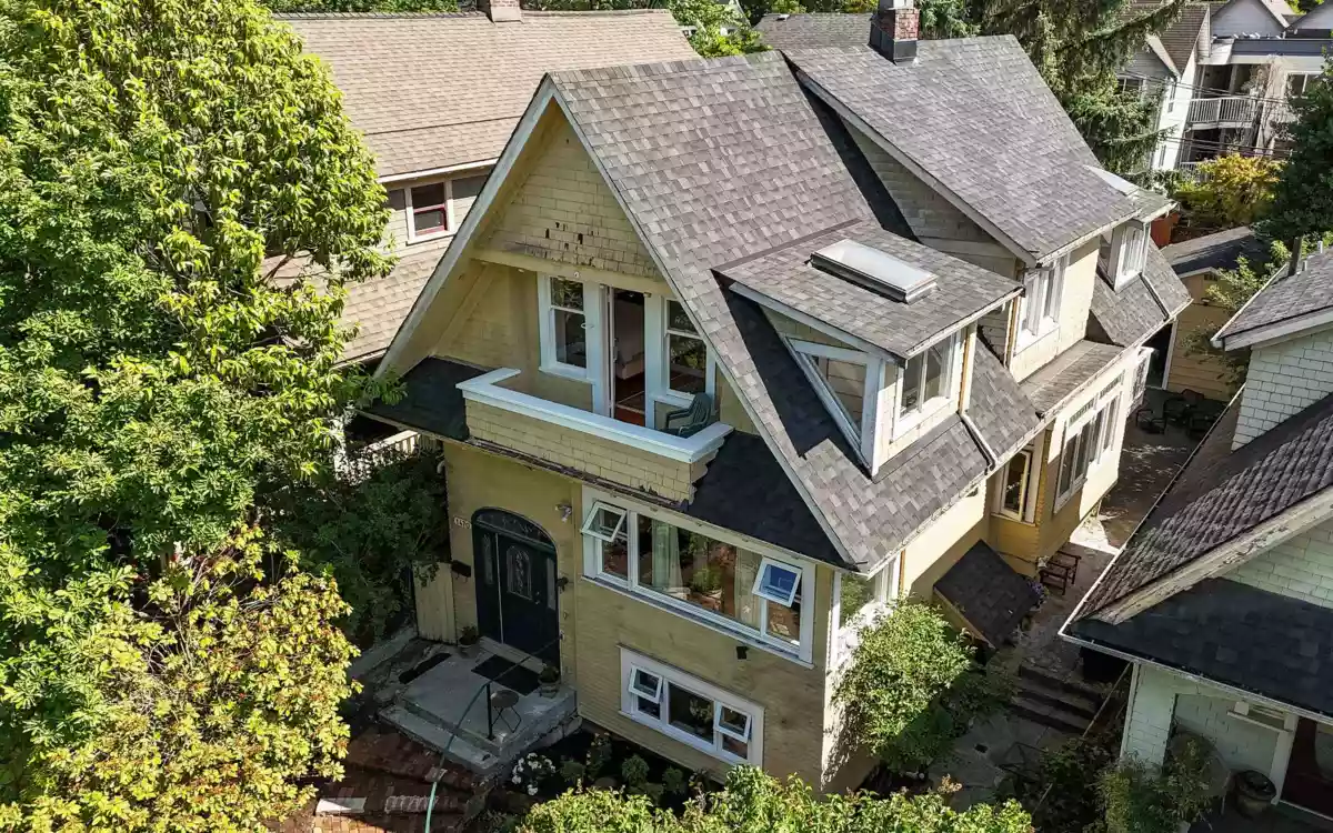 Grand Dame of Commercial Drive! Stately three-level character home with top-floor views of the downtown skyline and North Shore mountains from your principal bedroom balcony. Three spacious bedrooms and a full bath up, all with dormers and hardwood floors. Rear bedroom includes laundry and former kitchen with private balcony. Main floor is bathed in west-facing light with character windows, a large living room, formal dining, and an updated kitchen overlooking a sunny, fenced south-facing backyard. Lower level features an owner-occupied two-bedroom garden suite with high-end finishings. Live in, renovate, co-purchase, or create a multi-generational compound on this RM4 lot. Drafted plans available for an 1,800 sq.ft. infill.