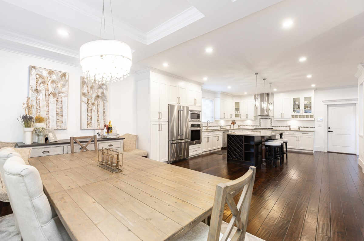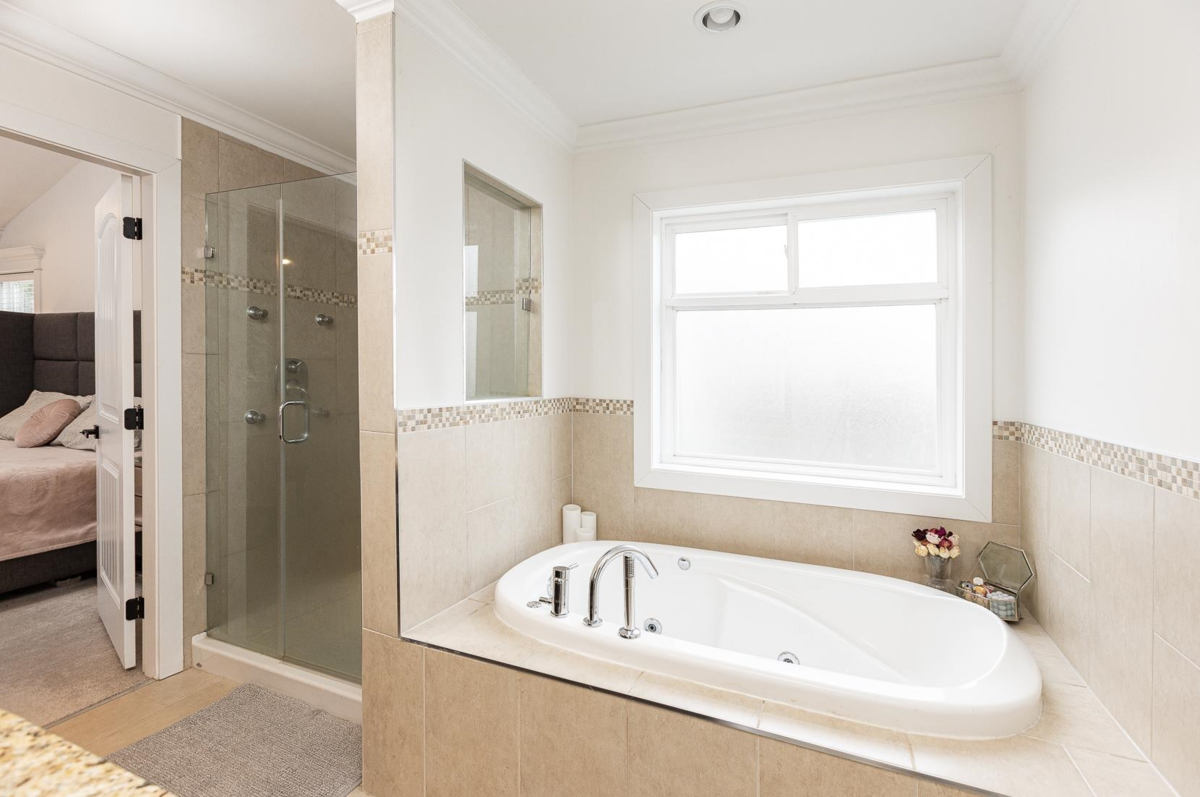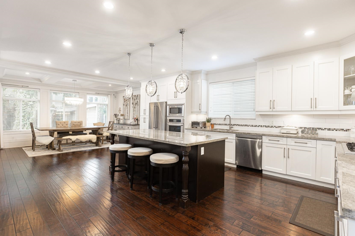 Welcome to this stunning custom-built home located in prestigious neighbourhood of South Surrey. This unique luxurious 5 bedroom home offers privacy and tranquility. Incredibly open layout. Spacious and bright living area with vaulted ceiling. Modern gourmet kitchen with oversized island and granite countertops making it perfect for entertaining guests. The private backyard is truly an outdoor paradise, with covered patio area, which makes a perfect evening escape into a mature, well treed entertainer's oasis. Basement features an upgraded media room perfect for movies and video games, and a large 2 bedroom suite with separate entry. Master bedroom is a true fairyland, with balcony overlooking the backyard. Your chance to own this one-of-a-kind home. Semi Trail Elem / Elgin Park Sec.