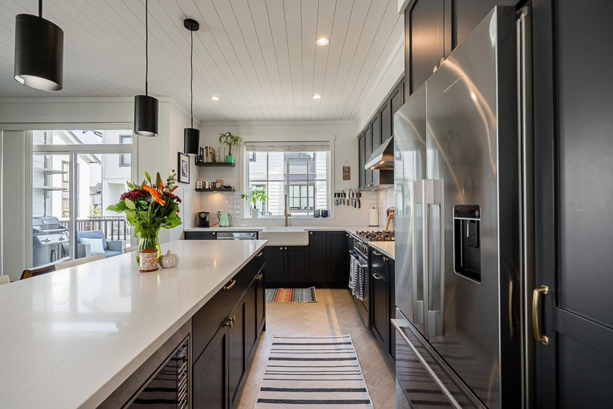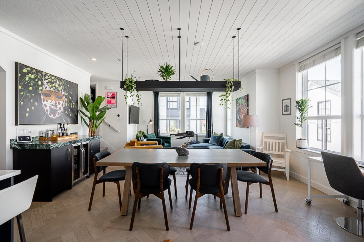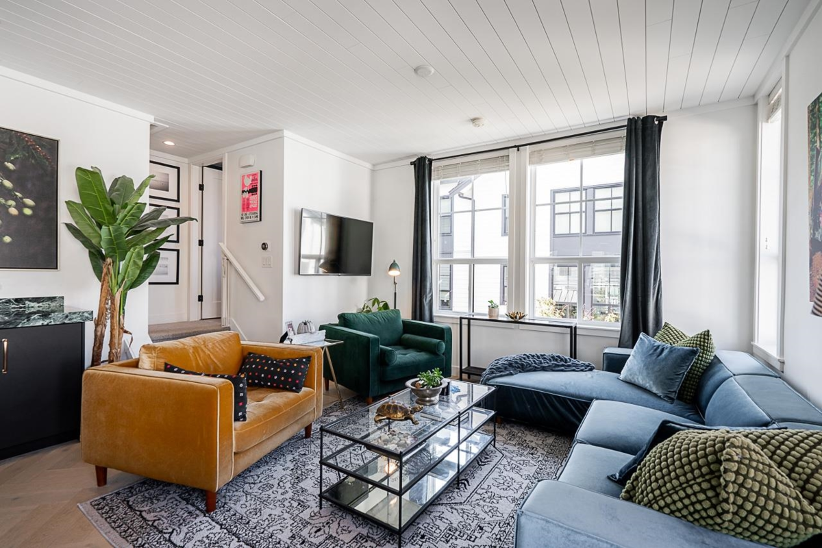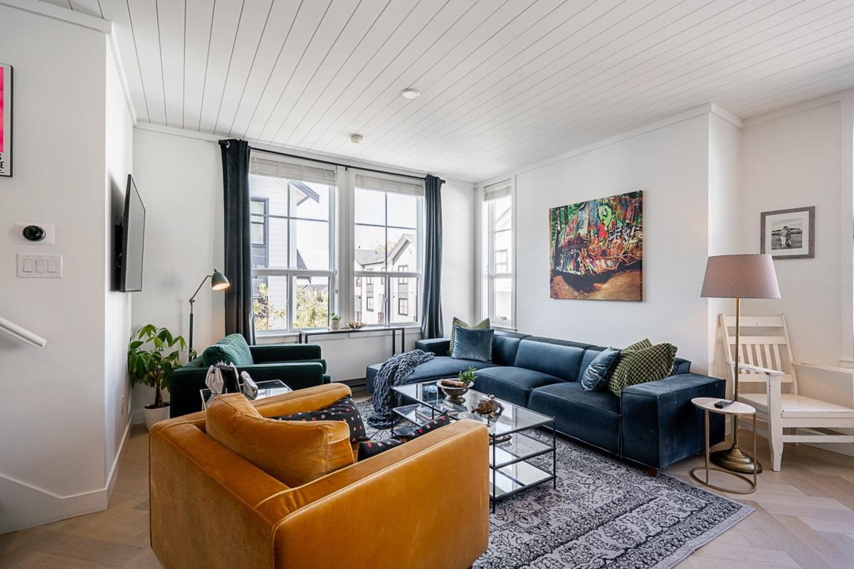 Welcome to Holden Row in Grandview Heights, a thoughtfully designed 1,750 ft.² end-unit townhome offering 4 beds & 4 baths. Oversized windows and end-unit exposure flood the home with natural light. The main living level is anchored by a large central island, creating a natural hub for everyday living and entertaining. Custom features include a striking fireplace feature, shiplap ceilings, & built-in cabinetry with bar/wine fridge, adding warmth and function. The kitchen showcases Fisher & Paykel appliances, quartz countertops, with herringbone hardwood floors throughout. Full A/C, 2nd-stage EV charging, nat gas BBQ hookup, and excellent storage enhance convenience. Ideally located steps to Morgan Crossing, the Aquatic Centre, schools, and everyday amenities. Private showings anytime!