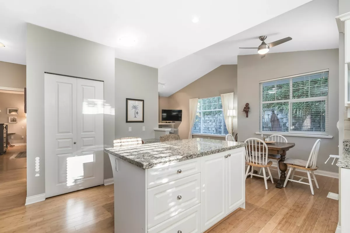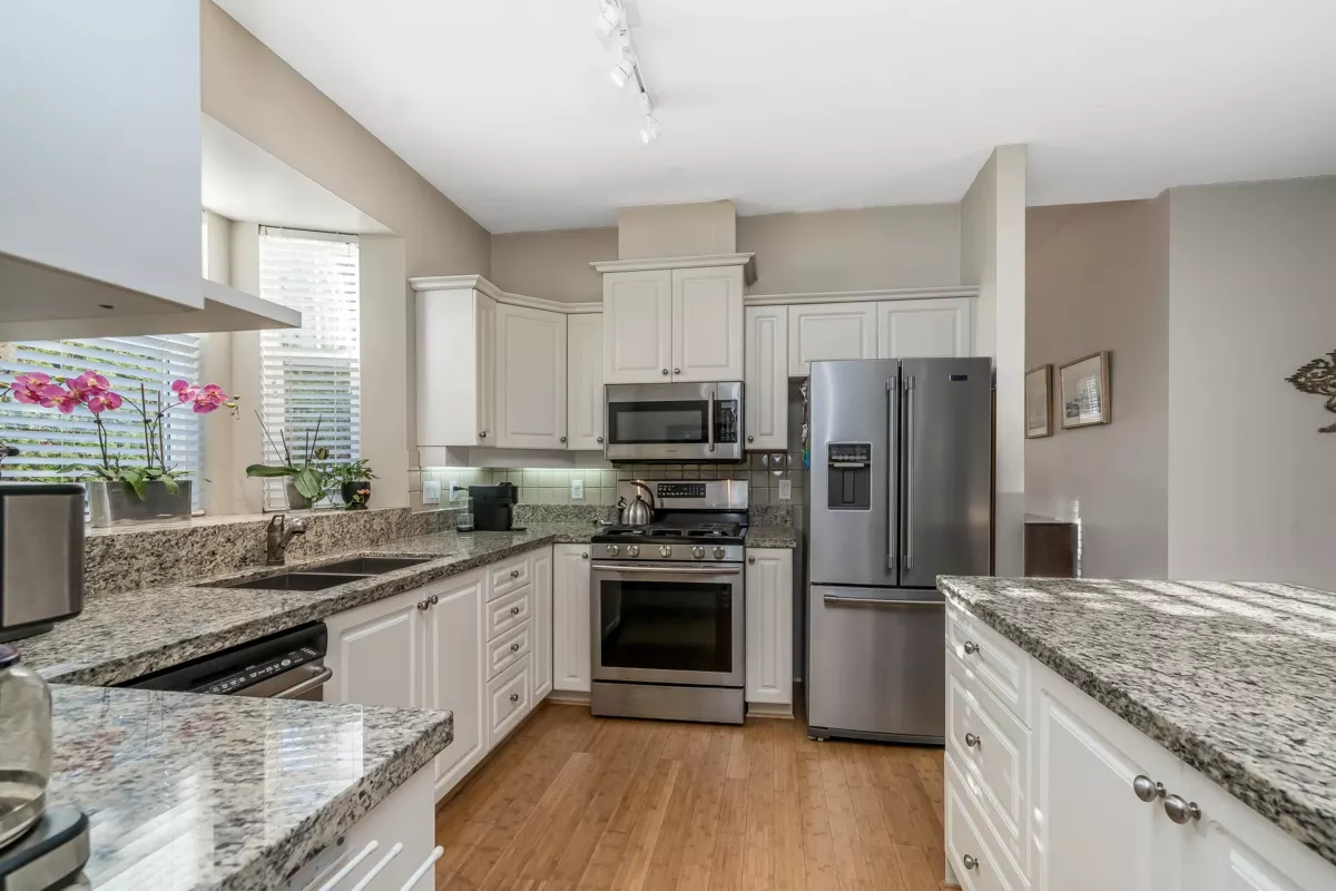 Welcome home to The Crescent! Beautiful 2 storey DETACHED townhome with primary on the main. Lots of windows, vaulted ceilings and skylights make this home very bright and welcoming. Great open floor plan includes living room with gas fireplace, formal dining room, and spacious kitchen with island and eating area open to family room with gas fireplace and access to the beautifully landscaped, fenced backyard. Above you will find a spacious bedroom with full bath and a great loft area, perfect for home office or den. Great opportunity to own in this quiet and well-maintained gated community, roofs recently replaced! Fabulous location, enjoy beautiful walks along the riverfrfont and fast, easy highway access. This is a beautiful home in the ideal location, don't miss it!