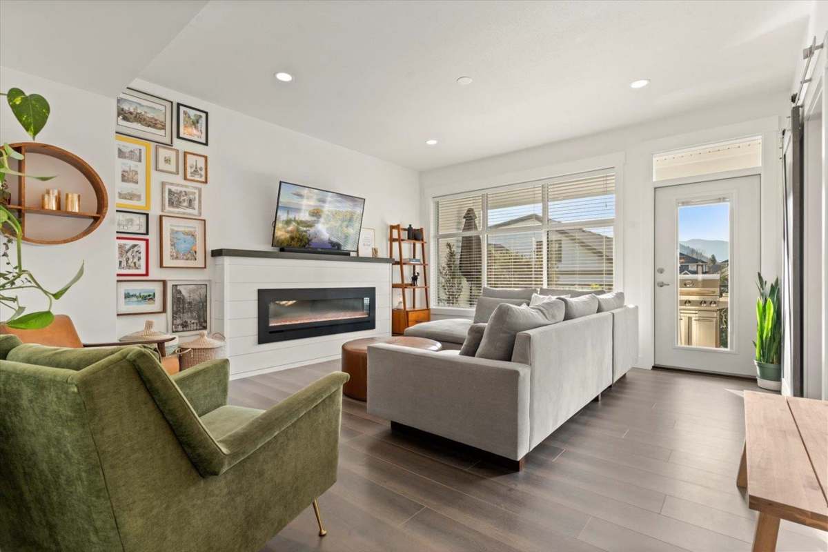 Style, space, and zero yard work? Yes please. This approximately 1,800 sq ft 3 level townhome delivers the perfect mix of modern design and everyday comfort. The main floor shines with an open layout, quartz counters, stainless steel appliances, subway tile backsplash, and a generous island made for hosting. The living area feels bright and welcoming with oversized windows and a sleek fireplace feature. Built in AC keeps you cool in summer, while your private patio and artificial grass give you the outdoor vibe without the maintenance. Backing greenery for added privacy, plus a garage and polished finishes throughout, this one just feels good the moment you walk in. Hop on a bike ride and head to the beach and enjoy all the entertainment Harrison Hot Springs has to offer. See virtual tour!