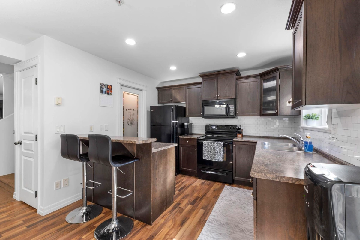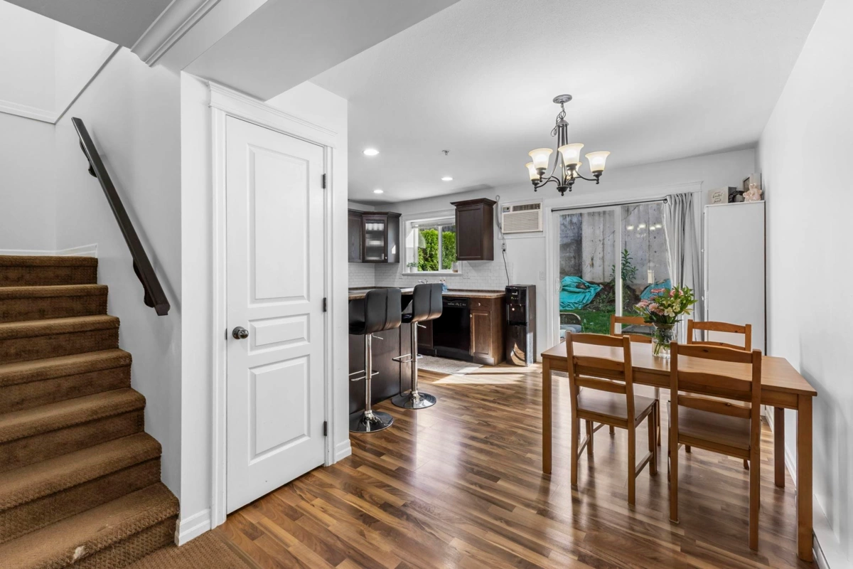 Welcome to Cornerstone Haven! A great family friendly townhome on Promontory. This well maintained, 3 story, 1,480sqft 3 bed 3 bath townhome, a large foyer, & a great open concept main living area w/ a bright spacious living room w/ a n/g fireplace, dining area, kitchen w/ pantry & A/C, & walk out to your covered patio & fully fenced yard! Upstairs you have your primary bedroom w/ walk in closet & 3pc ensuite. 2 more great sized bedrooms & 4pc bath upstairs. Great rec room area downstairs w/ laundry, 2pc bath & access to garage. Close to all amenities, all levels of schools, and quick Hwy 1 access down Prest road!