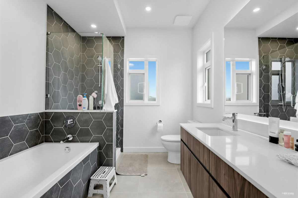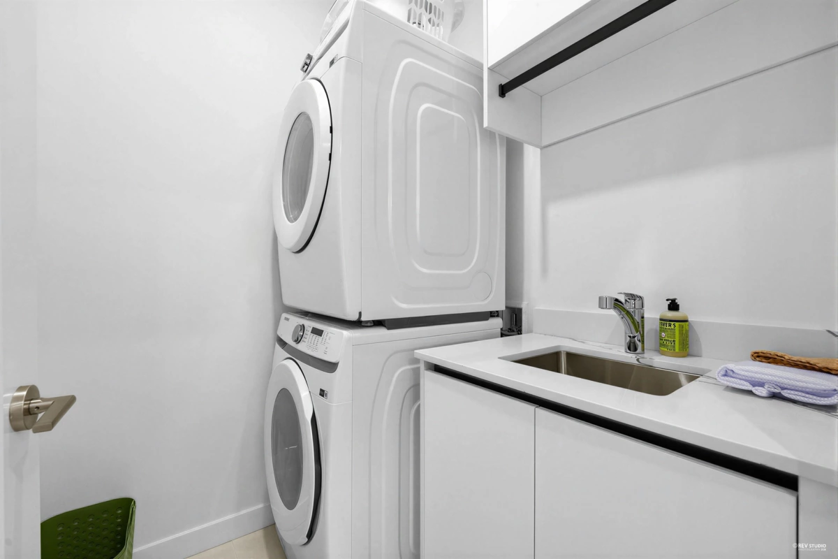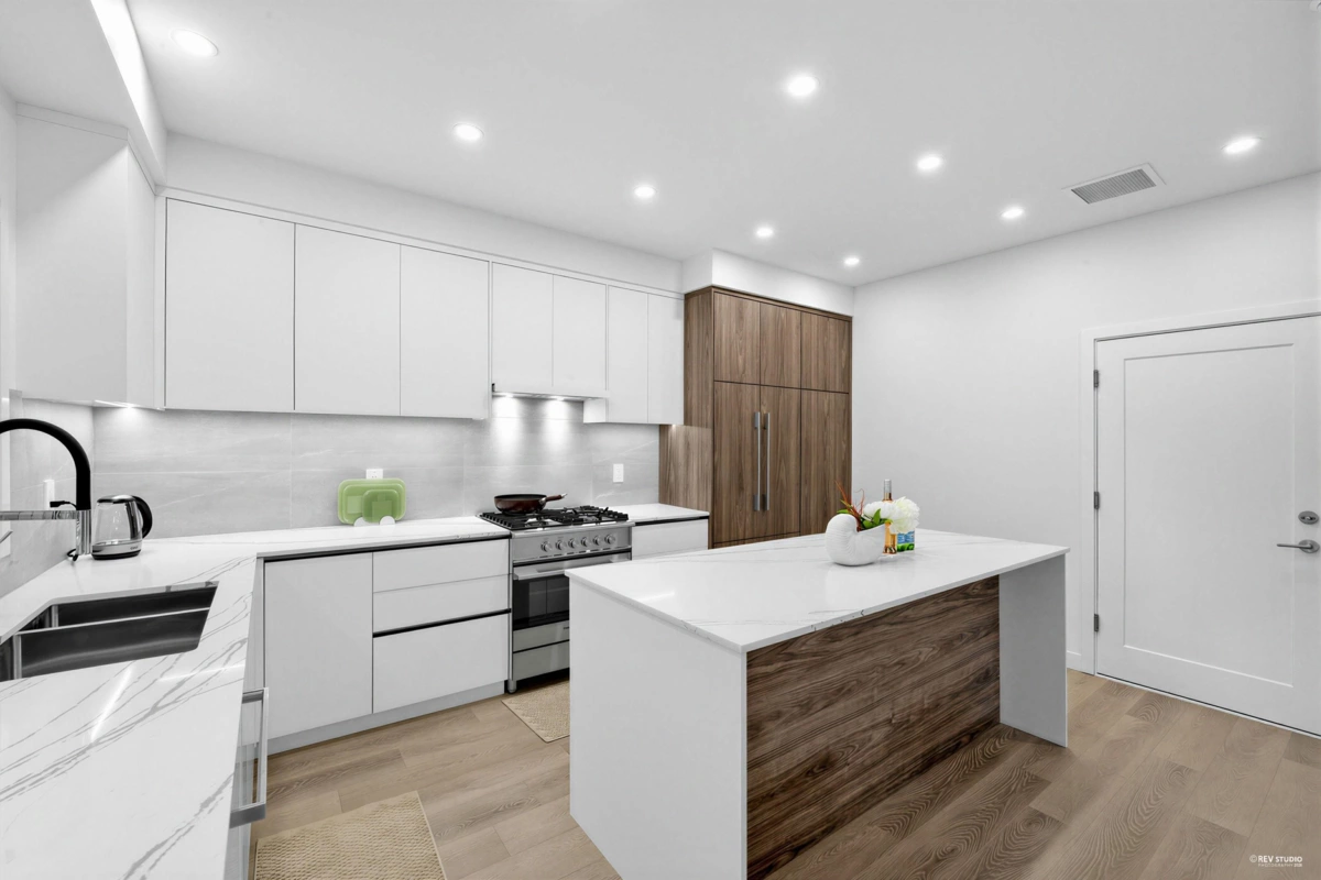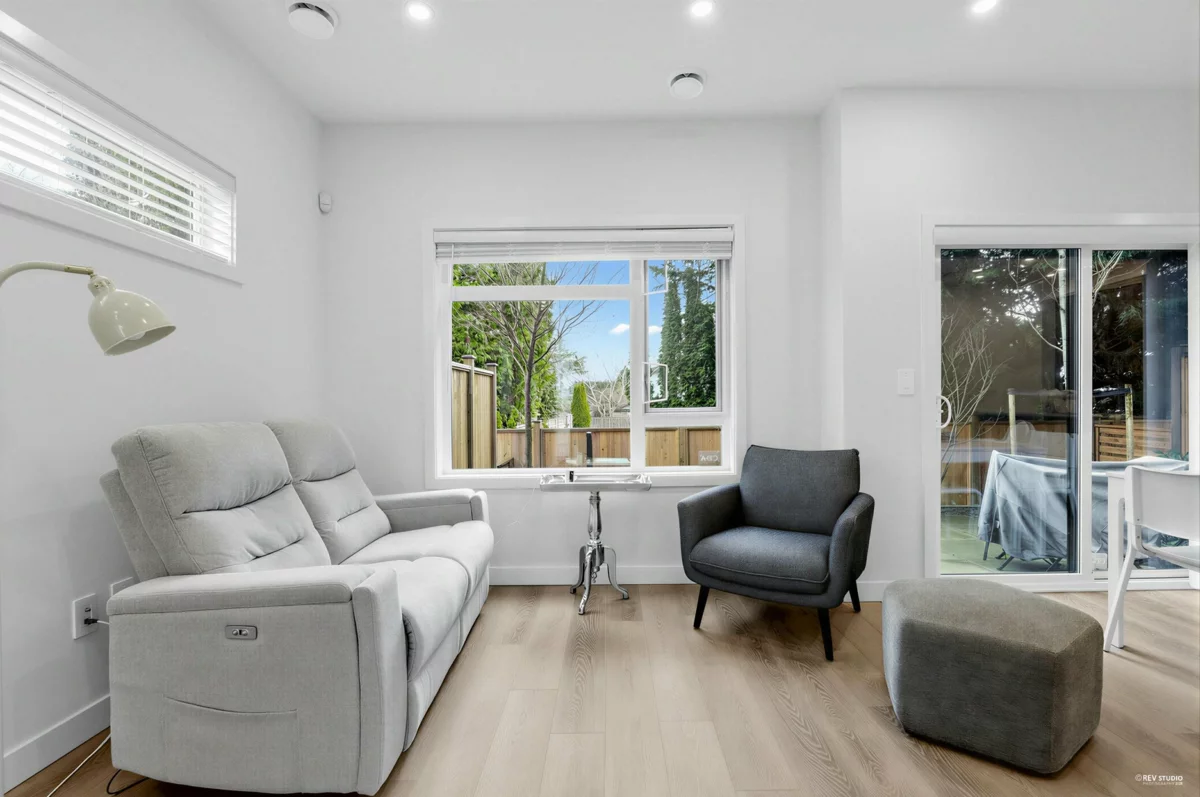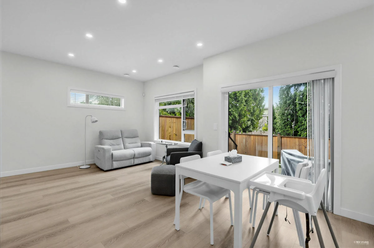 This 2 floors spacious & stunning townhome features 4 bedrooms and 4 bathrooms with Double side-by-side garage. Enjoy a modern open-concept layout with 11' ceilings, abundant natural light, European-inspired kitchen, equipped with Fisher & Paykel integrated refrigerator & German-designed Deson cabinets. Gas stove, and ample storage. Smart home features and a Smart Steam Closet, plus a heating and cooling system for year-round comfort. Close to West Dyke Trail, Golf Course, Multiple schools, parks and playground.