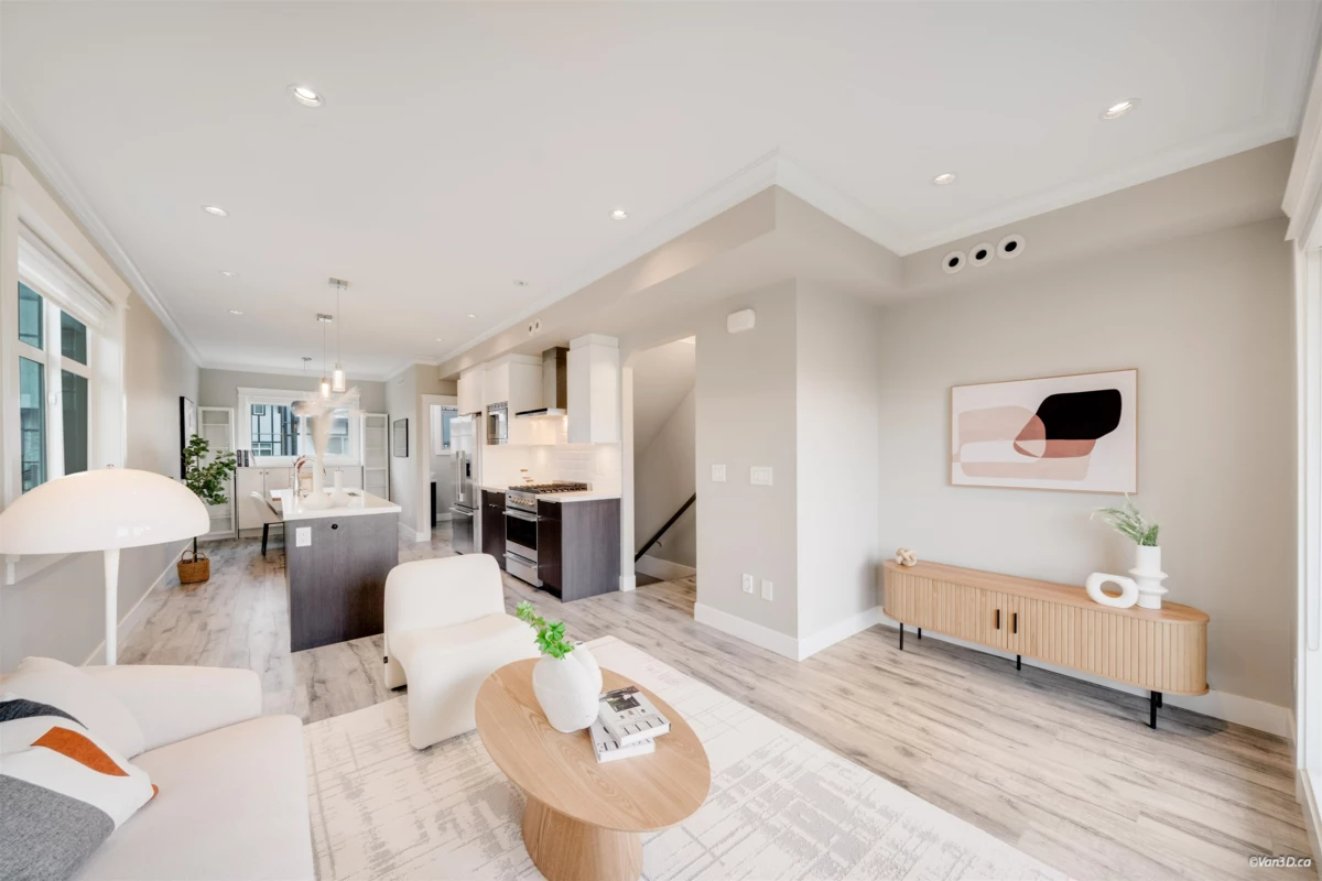 Modern & spacious 3-bed, 2.5-bath home featuring a two-car tandem garage. Soaring 9' ceilings, designer crown moulding & open-concept layout showcase the gourmet kitchen with quartz counters, two-tone cabinets & premium stainless steel appliances. Stylish lighting & neutral palette create a bright, welcoming space, complete with central A/C & security system. Prime central location offers convenient access to shopping, highways, transit & airport – ideal for busy professionals & growing families.