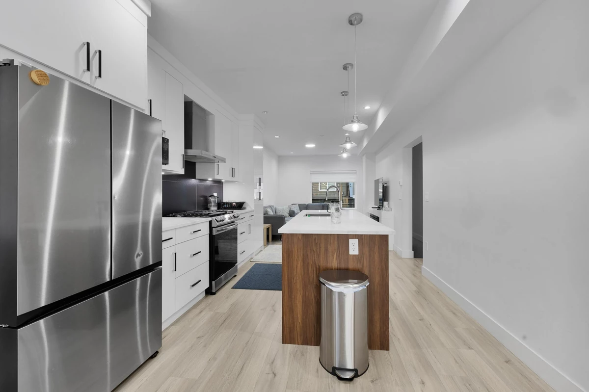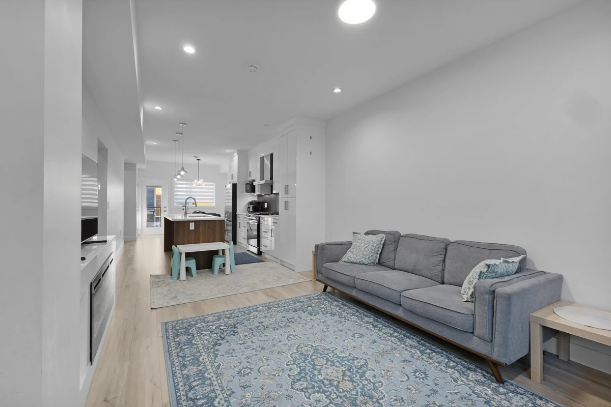 Welcome to Westwood at Tynehead, a modern townhome community nestled in nature. This generous 1,379 sq ft , 3-bedroom, 3-bathroom home is perfectly situated near schools, transit, shopping, and offers easy freeway access, all while being directly adjacent to the stunning 640-acre Tynehead Park. Noteworthy features include gas heating and on-demand hot water, European-inspired kitchens with a large island, pantry, and soft-close cabinets. The home is equipped with premium Samsung appliances, including a gas stove and an ice/water fridge. The master suite boasts a walk-in closet and a luxurious ensuite with dual sinks. Additional highlights include smart home technology, painted ceilings & recessed lighting. Showing only at Open House Saturday-24 Janaury-2-330 pm