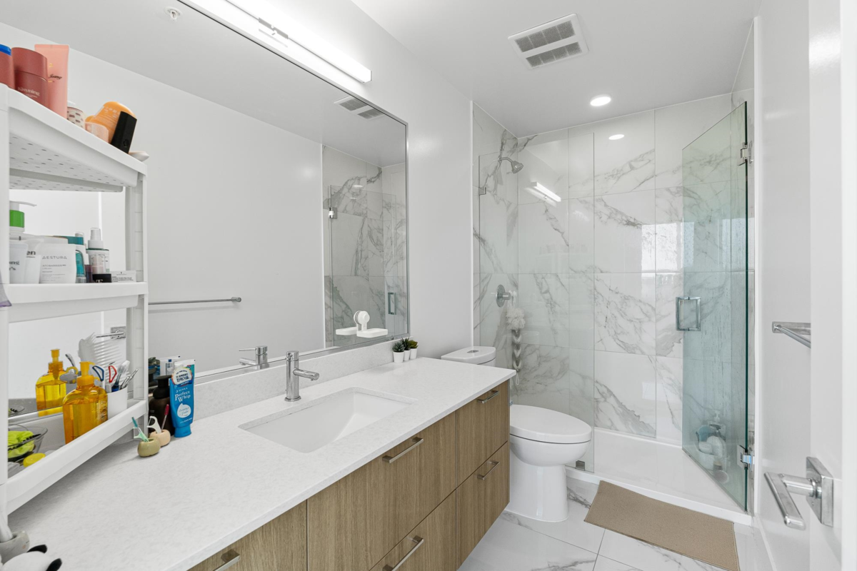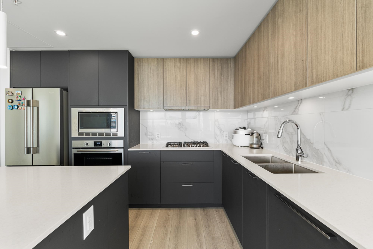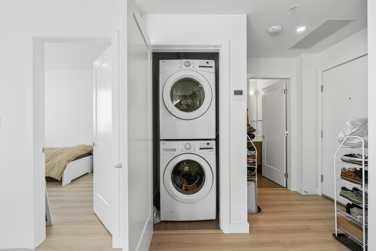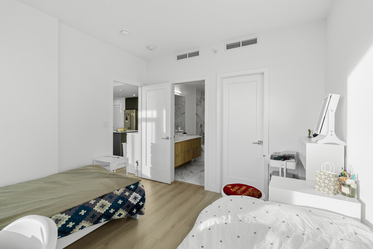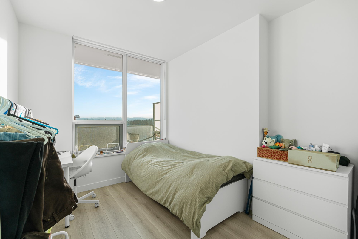 Welcome to The Towers! This bright and modern 2 Bed Unit is the epitome of urban living with an amazing unobstructed panoramic view. The view dances through the seasons—blushing with spring’s awakening, deepening into summer’s lush embrace, burning in autumn’s gold, and finally resting beneath winter's quiet veil. Bathed in natural light, it features high-end appliances, Air-Conditioning, and an efficient layout that maximizes space and functionality. Located in a well-built concrete high-rise, the unit comes with a EV rough-in parking stalls and a storage locker for added convenience. Situated in a prime location close to schools, shopping,and transit, you'll have everything you need right at your doorstep. Enjoy access to incredible building amenities, including a lounge, gym and more!