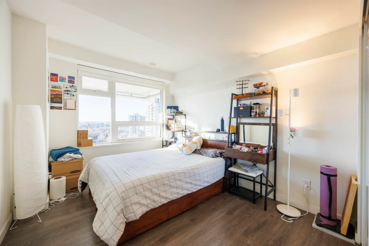 Welcome to Wall Centre Central Park. This 15th floor CORNER unit offers a highly functional layout with 2 bedrooms, 2 bathrooms plus a flex room, featuring WINDOWS ON BOTH SIDES that bring in abundant natural light throughout the day. The SOUTHWEST-FACING exposure provides open, UNOBSTRUCTED mountain views from the living room and both bedrooms, creating a bright and airy living environment. The open-concept living and dining area is finished with high-end appliances, quartz countertops, and shaker-style cabinetry. Amenities include a full-size fitness centre, lounge, garden plots, playground, courtyard, and visitor parking, all within walking distance to Central Park, SkyTrain, dining, and everyday conveniences. Open : Sunaday, 1/25 2-4PM