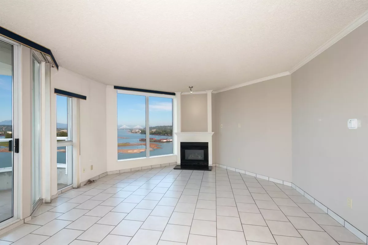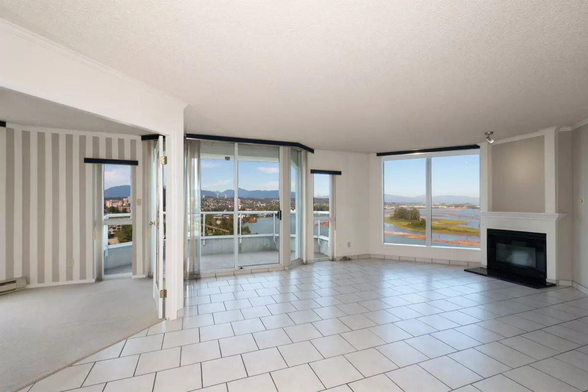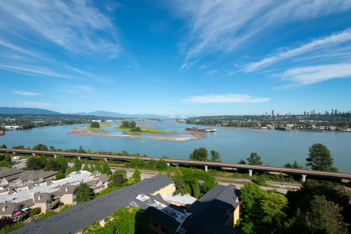 VIEW VIEW VIEW!! Rarely does a unit as special as this comes up for sale. Spacious bright three-bedroom condo with stunning, unobstructed views of the Fraser River, Mount Baker, and Sapperton from every angle. Features include tile floors in main areas, a gas fireplace in the living room, and two balconies—one off the living room with northern and eastern views, and another off the kitchen and second bedroom with southern views. Includes one parking space and storage. Conveniently located within walking distance to SkyTrain, shopping, restaurants, and parks.