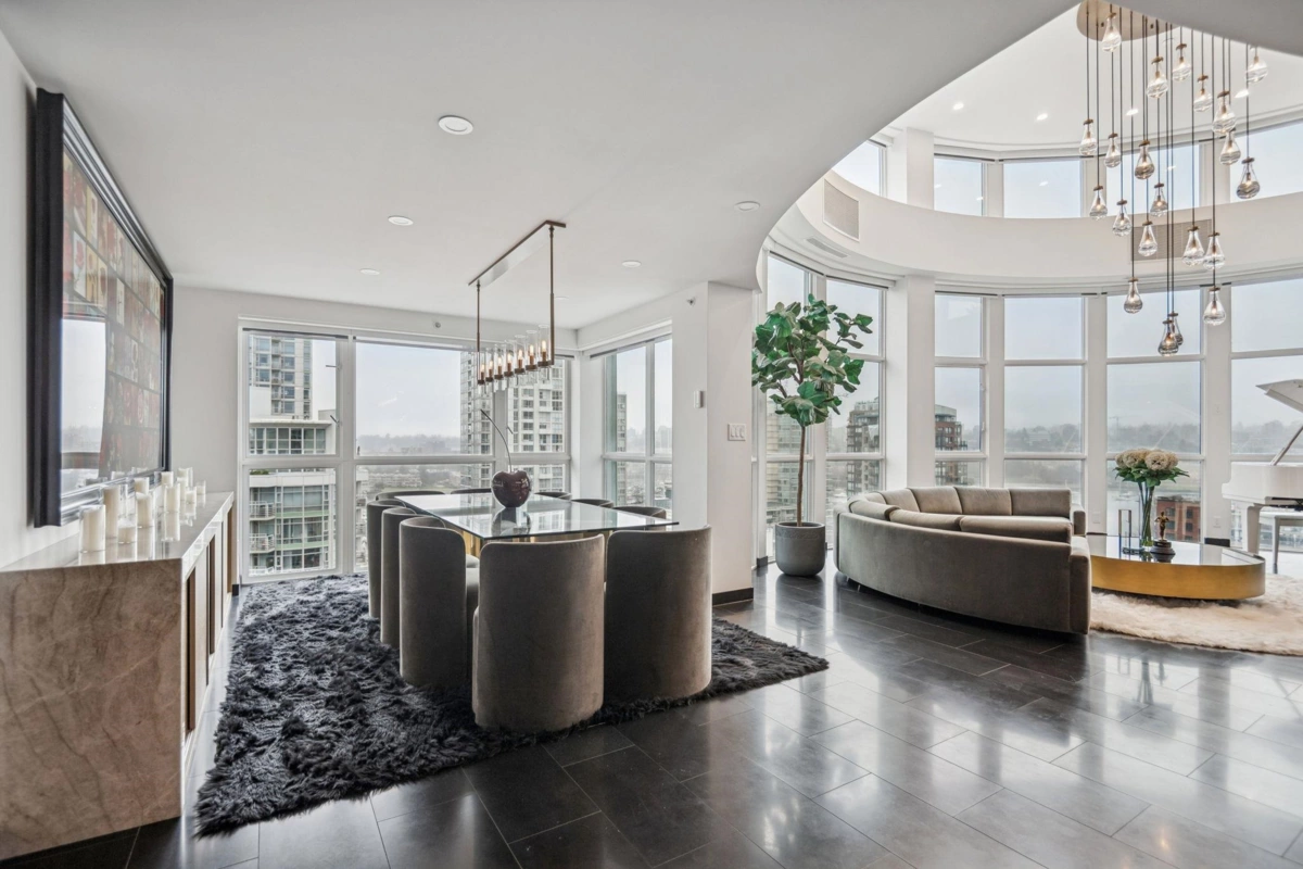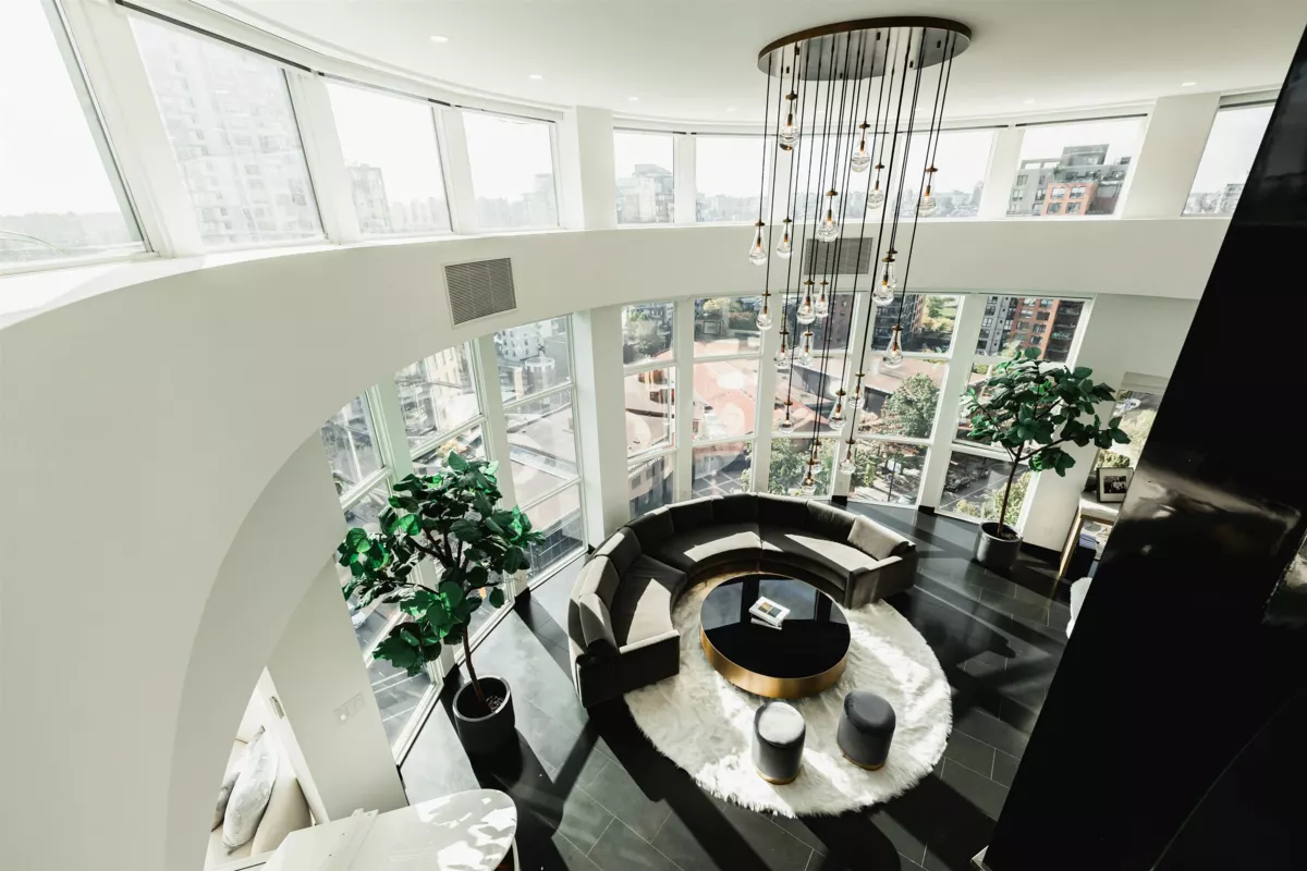 Award winning penthouse offering rare privacy, flexibility and architectural pedigree. This fully renovated two-storey 4,200 sq.ft residence features south and west-facing windows with stunning marina and city views from every room. Recipient of Georgie & HAVAN Awards with over $2.5M in curated renovations, it is currently configured as a 4 bedroom, 3 bathroom home. The primary suite opens to a spectacular 500 sq.ft terrace with built-in BBQ and fire table. Enjoy a custom wet bar, billiards and recreation room, and a chef’s kitchen with new appliances and living plant wall. Includes five parking stalls and two storage lockers. Rare ability to re-convert into two luxury residences.