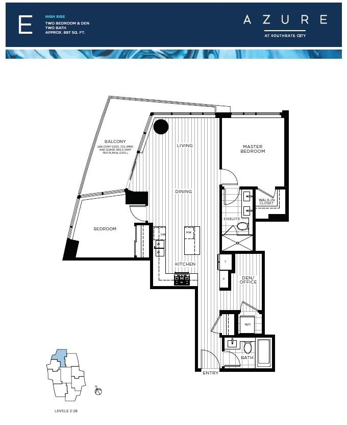 Enjoy efficient and elegant living in this corner 2-bedroom + den home at Azure. With bedrooms smartly separated by the living area, each resident enjoys enhanced privacy. Expansive windows and a rich two-tone colour scheme create bright and inviting interiors. The kitchen is outfitted with full-size appliances, ample in-suite storage, and kitchen island. Thoughtfully designed for residents to enjoy seamless indoor-outdoor living, the expansive balcony extends your living space outdoors and is ideal for entertaining or unwinding. With a calming northwest exposure showcasing stellar views, this home combines style, comfort, and functionality. The Sales Centre will be closed for the holidays from Dec 19 to Jan 3, open by appointment only. Book an appointment with our Sales Team.
