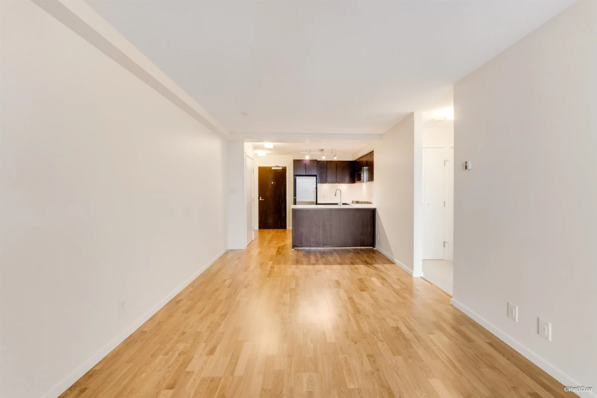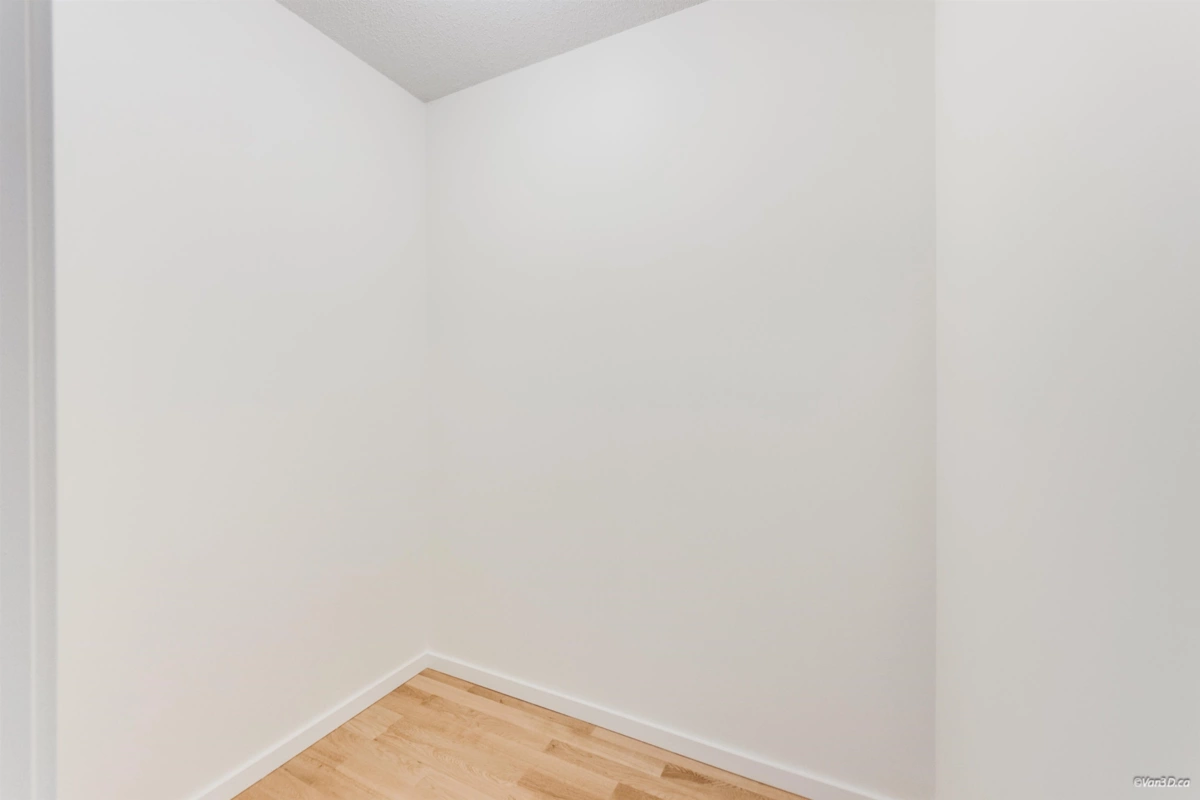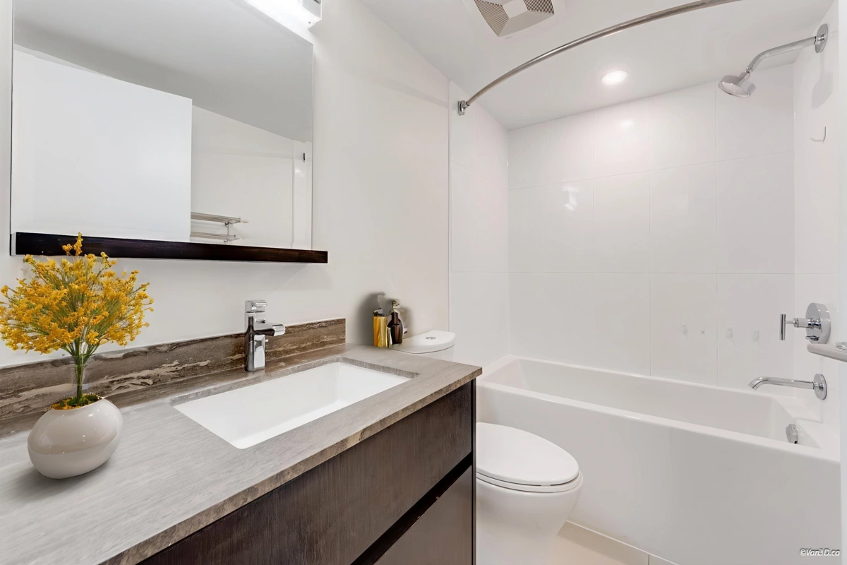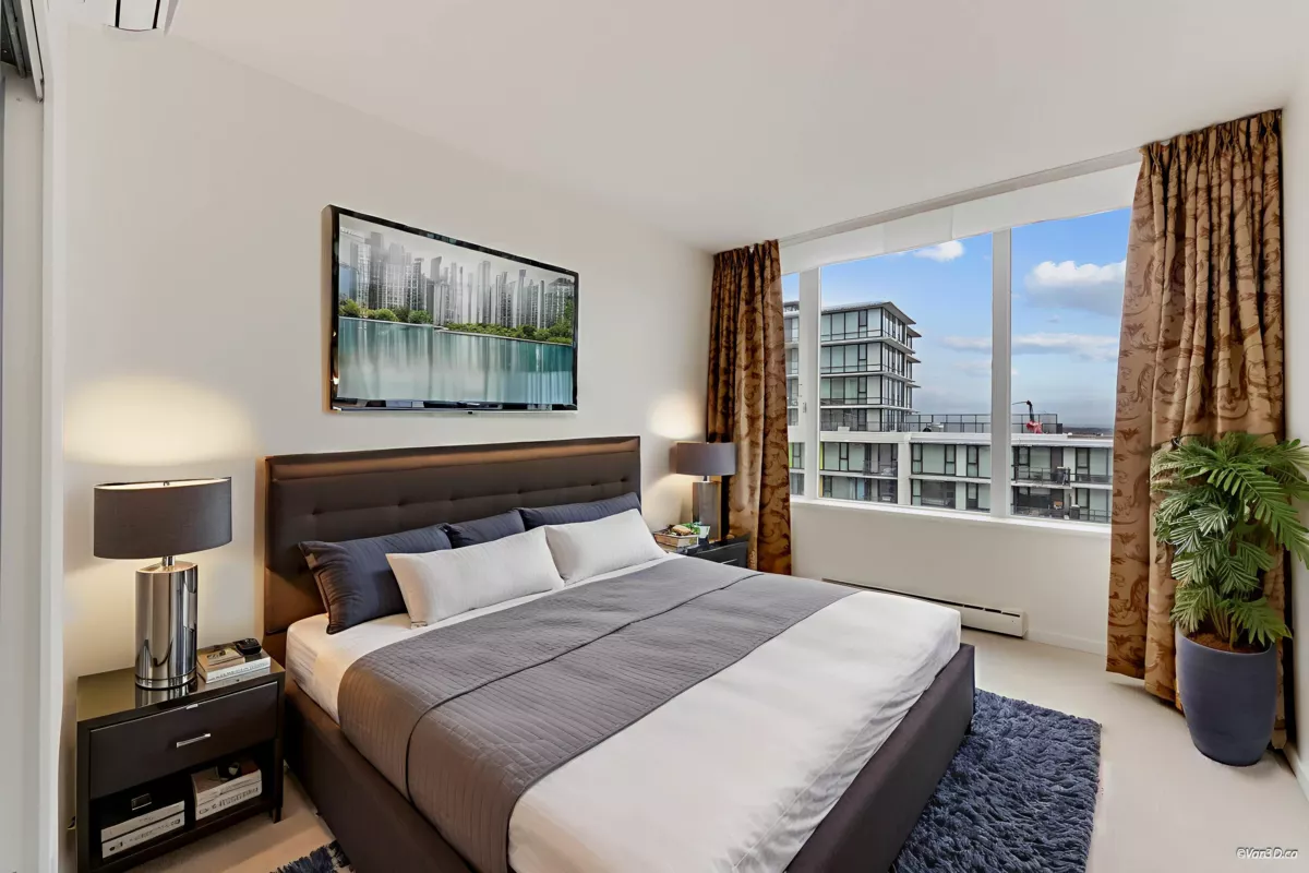 Located on the 15th floor of a concrete high-rise in Richmond City Centre, this east-facing 1 bedroom plus den, 1 bathroom home offers 586 sq ft of well-designed living space with a peaceful garden view. The unit features air conditioning, fresh paint throughout, and a functional open-concept kitchen with quartz countertops, gas cooktop, and stainless steel appliances. Comes with 1 secured parking stall and 1 private residential storage locker room (86 sqft). Enjoy excellent building amenities and an unbeatable location within walking distance to SkyTrain, shopping malls, supermarkets, restaurants, and Kwantlen Polytechnic University. Measurements are approximate, Buyer and Buyer's agent to verify.