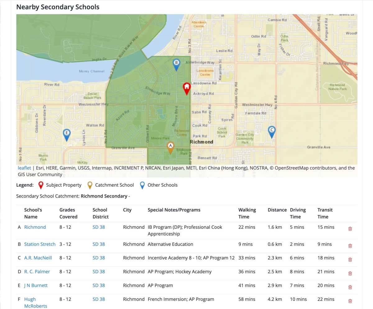 Information includes BC Government Open License data; school details change often and are offered solely as general guidance.