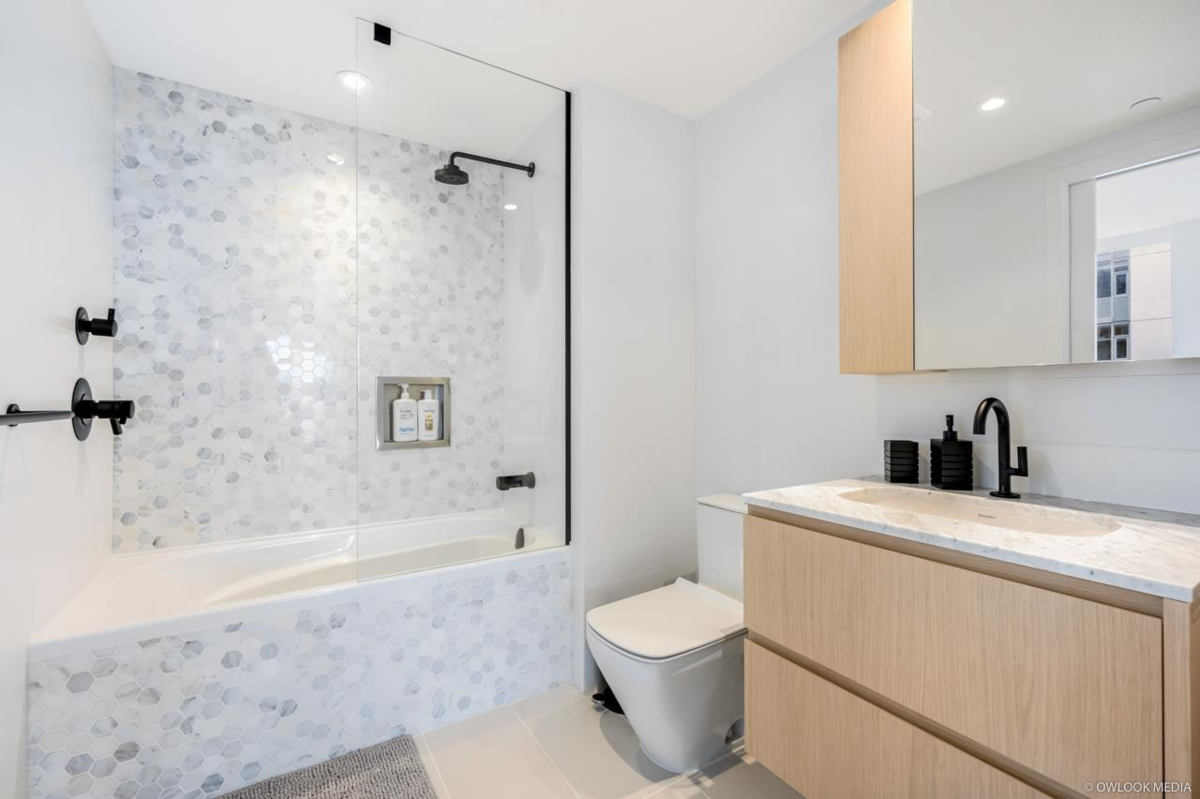 Welcome home to the beautiful R plan in the West Tower at Mirabel. Built by Marcon w/ over 36 yrs of construction expertise & thoughtfully designed by award winning Alda Pereira. This NE facing 2 bed/2 bath corner home boasts stunning views of the city & mountains. Seamless indoor/outdoor living on your large balcony w/ natural gas hook-up, perfect for soaking up the dazzling city lights. Chef inspired kitchens w/ Armony Cucine cabinetry include Wolf gas cooktops, wall oven + Sub-Zero integrated fridge. High-efficient heating + air con system for year-round comfort. Sophisticated master en-suites boast double vanities + Italian marble throughout. Unbeatable West End location only steps to shopping, parks & seawall. Electrical blinds upgraded!