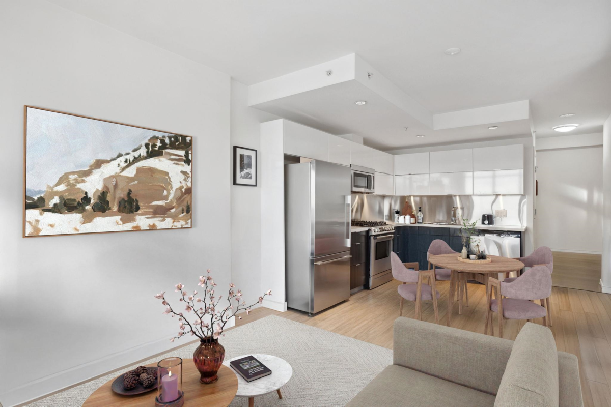 LIVE OLYMPIC VILLAGE AT OPSAL by Bastion – QUEBEC & 2nd. Perfectly laid out freshly 1 bed & den w/parking. Gourmet kitchen incl S/S full size Fisher & Paykel smart fridge, Bosch gas range + D/W, designer cabinets & quartz counters. Open concept w/generous living/dining room, featuring floor to ceiling windows. Enjoy city & mountain views w/close proximity to: seawall, transit, shopping, restaurants & breweries. 2nd owners. Unit in very good condition with balcony. Rentals and Pets Allowed. Book your showings now!