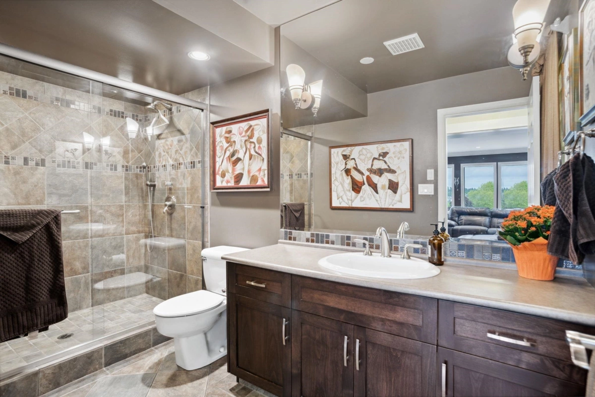 Discover your dream home in Chimney Hill! Situated on a sprawling 12,000+ sq ft lot, this impressive residence offers 5 spacious bedrooms, 4 bathrooms, and a 2-bedroom suite-perfect for extended family or rental income. The stunning, fully renovated chef’s kitchen features premium appliances. A large open space family room with attached sunroom adjacent to the kitchen offers plenty of space for family gatherings. Enjoy breathtaking views of Mt. Baker and the valley from the main-floor games room,complete with a built-in bar. Step outside to a beautifully landscaped yard with direct access from the kitchen -perfect for kids, pets, and outdoor gatherings. Modern upgrades include a built-in speaker system throughout, 2 EV chargers, 2 hot water tanks, and an in-ground sprinkler system.