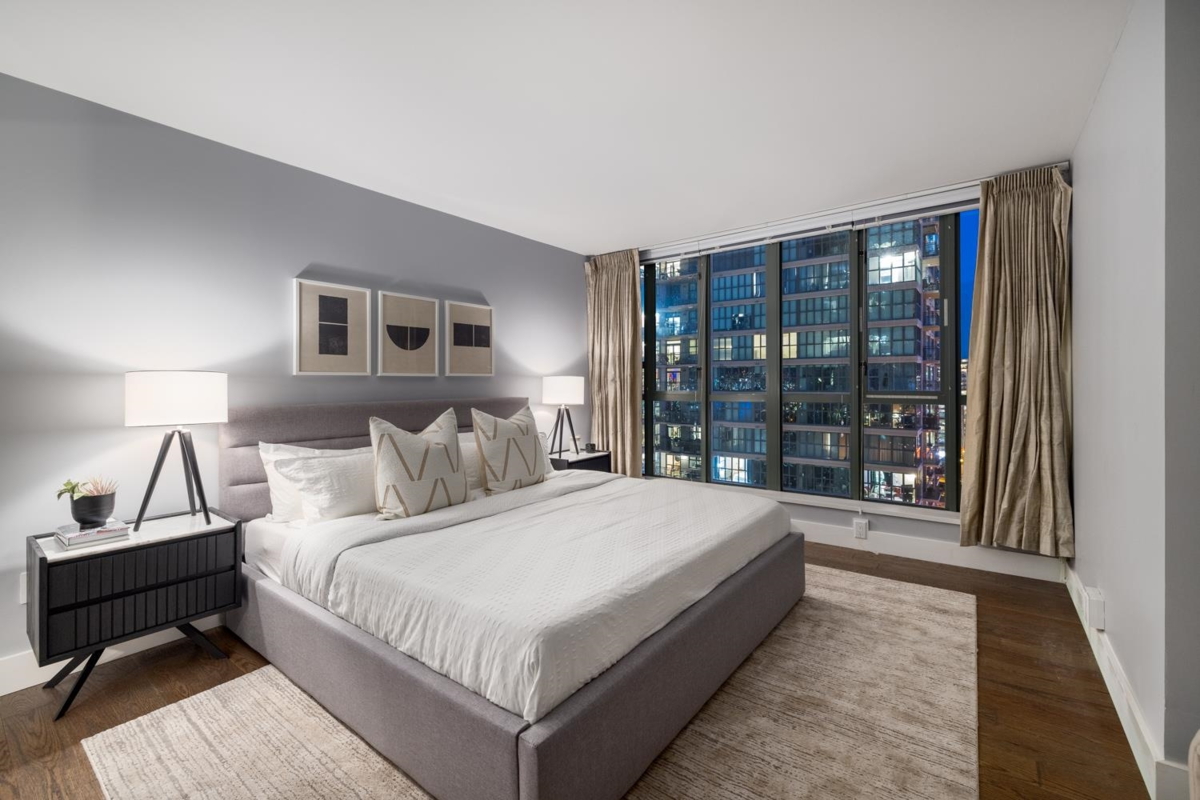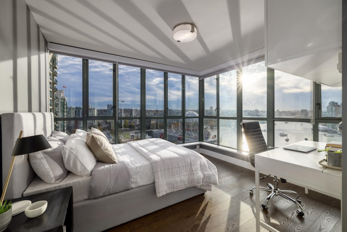 Experience unparalleled luxury in this exceptionally spacious 3-bedroom corner unit with breathtaking, unobstructed views of False Creek. Recently renovated, this home surpasses all expectations. Each of the three generous bedrooms offers stunning vistas. The open-concept kitchen, designed for multiple cooks, is perfect for both meal preparation and entertaining. The inviting living room features a beautiful new fireplace, expansive views, and ample space for large furniture. Upgrades throughout the home include custom sliding doors, a bespoke walk-in closet, heated towel racks, a high-end air conditioning unit, in-ceiling speakers, and heated bathroom floors. This is truly a unique and special residence.