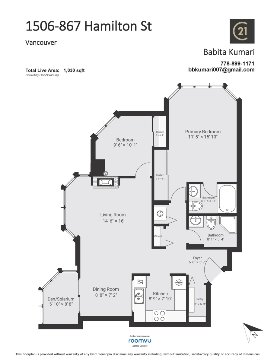 Welcome to 1506 867 Hamilton Street, Vancouver, BC - MLS R3081557