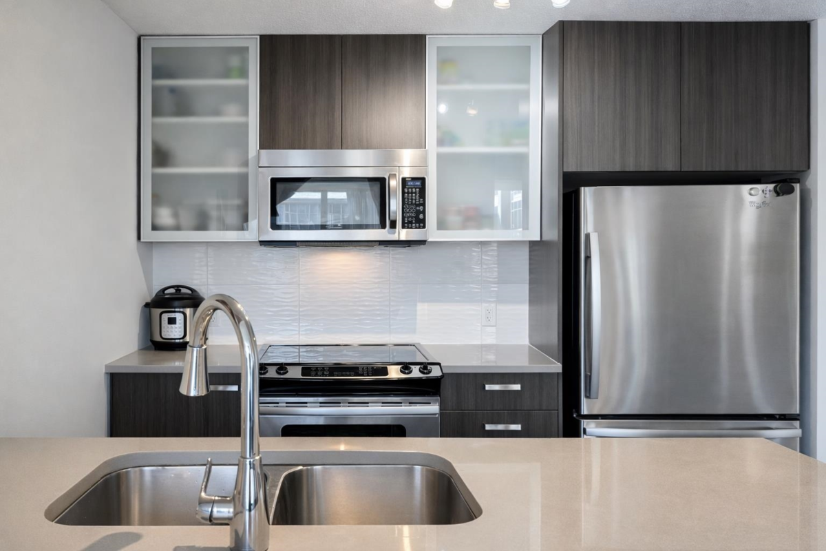 Prime Location at ULTRA! This bright 607 sq.ft east-facing 1-bedroom unit offers excellent value in Surrey's most dynamic neighborhood. Modern features include quartz countertops, stainless steel appliances, and laminate flooring. Enjoy in-suite laundry, 1 parking stall, and 1 locker. Building amenities: gym, party room, meeting room, and playground. Unbeatable location steps to SFU Surrey campus, with UBC's future campus coming soon! Walk to SkyTrain, Central City Mall with T&T, Library, City Hall, and recreation facilities. Perfect for students, professionals, or investors - rentals allowed! Quick possession available. Don't miss this opportunity!