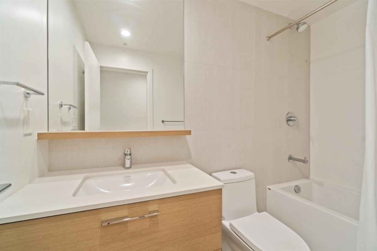 Akimbo by Imani Development stands as a signature Brentwood landmark designed in partnership with the award-winning IBI Group Architects. This bright south-facing residence features 2 bedrooms and 2 bathrooms across 785 square feet, offering a practical split-bedroom layout that maximizes privacy for both rooms. The spacious balcony expands the living space and provides open city views along with ample natural light throughout the day. Interior details include 9 foot ceilings, full-height windows, and a modern kitchen appointed with quality finishes and appliances. Individually controlled heating and air conditioning in every room ensure comfortable living all year round. Just minutes away from major shopping centres, restaurants, grocery stores, SkyTrain.OpenHouse Jan 3&4 Sat&Sun2-4PM.