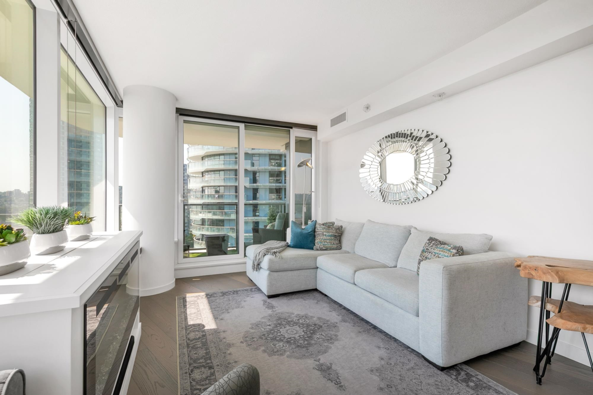 ALL furniture and built-ins included with home! This luxurious 2 Bed plus Den (with storage room) features an open floorplan w/elegant finishes, floor-to-ceiling windows, & a striking custom fireplace feature & tons of custom built-ins. The sleek kitchen is equipped with premium appliances & polished quartz countertops, while the den offers the perfect space for a home office or retreat. Residents enjoy world-class amenities including the iconic glass-bottom pool, hot tub, fitness centre, sky garden, & 24-hour concierge. Just steps from Yaletown's finest dining, Marina, the seawall, & downtown's vibrant lifestyle. Included 2 parking & storage. Includes ALL furnishings: Murphy bed, TV, wine fridge, Sonos system & more, making this truly move in ready! Ask for the inclusion list today!