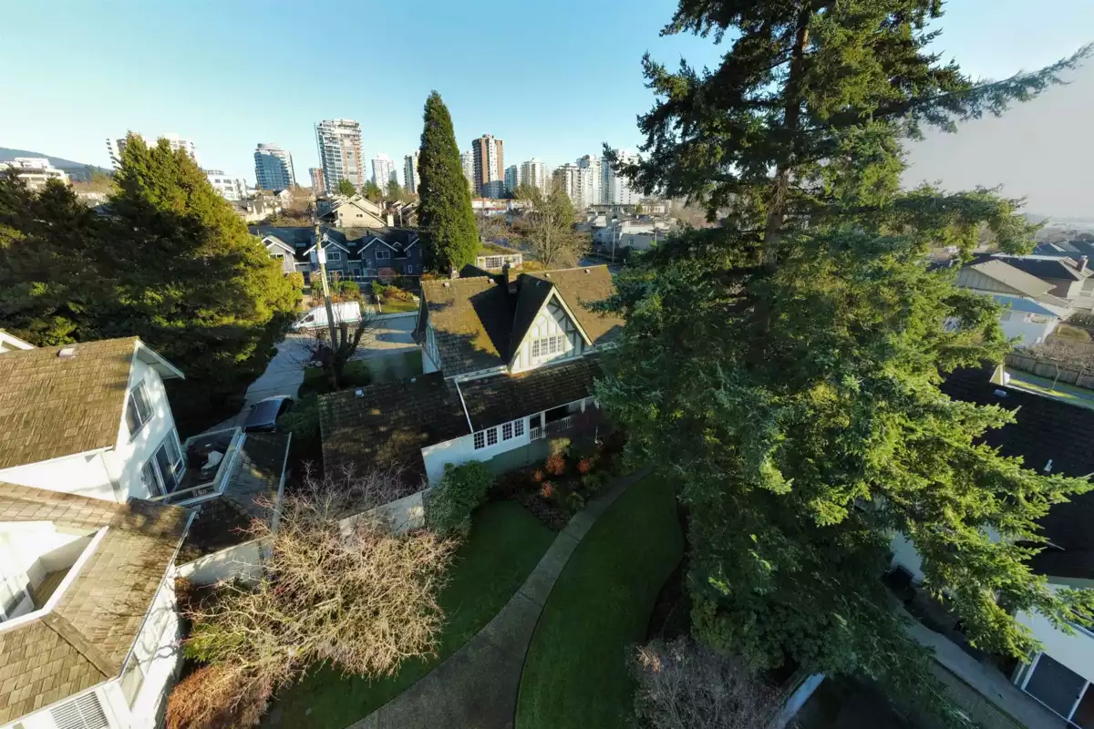 Welcome to the iconic “Kitchin” residence, a rare Tudor Revival home with Craftsman influence. Character-rich gables, half-timbering, mullioned windows, and a wrap-around veranda set the tone. Inside, 10-ft beamed ceilings, wainscoting, and heritage details blend with modern updates which includes wiring, plumbing, kitchen, baths, garage, furnace, hot water tank, carpets and fresh paint throughout. Centrally located near Lonsdale amenities, schools, greenbelts, and transportation.