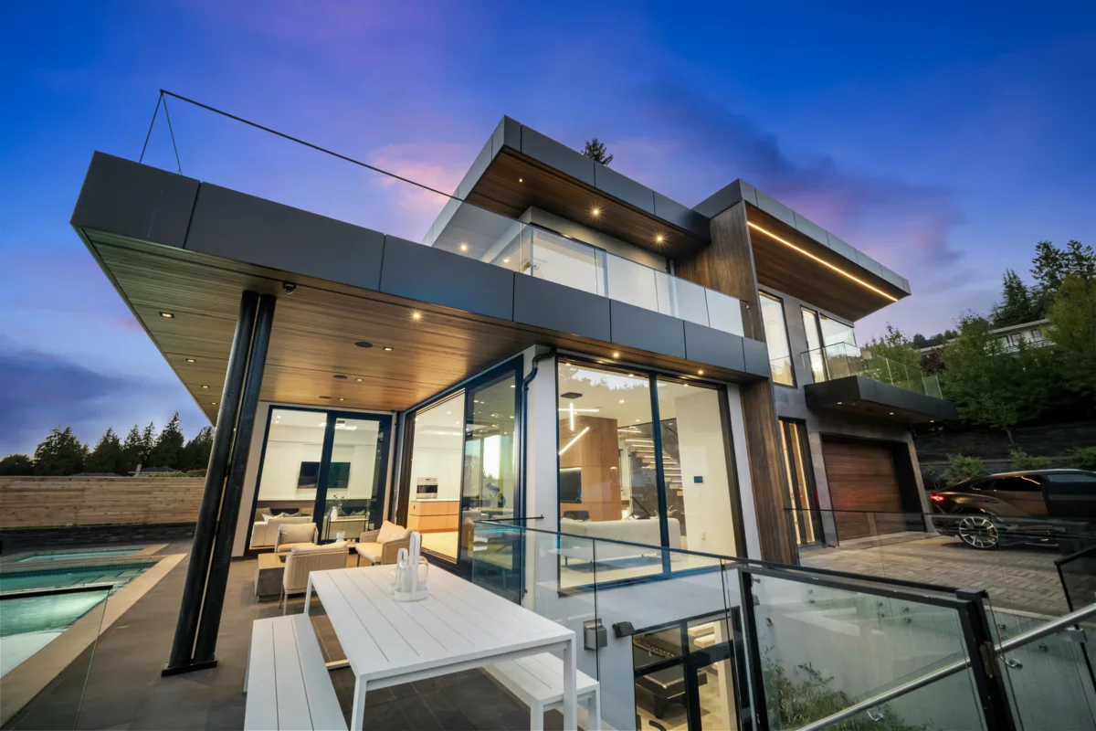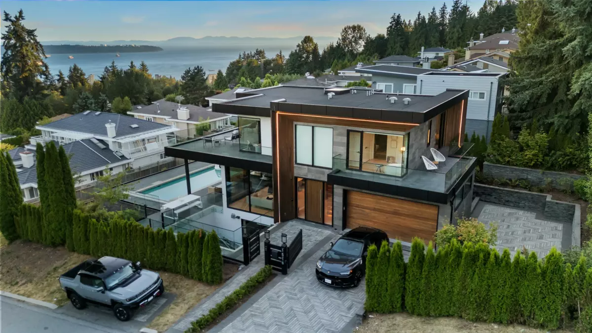 Welcome to this stunning 5,000 sq.ft. luxury estate in the prestigious Chartwell neighborhood of British Properties, West Vancouver. Built in 2021 with concrete and steel construction, this almost brand-new home offers soaring ceilings, floor-to-ceiling windows, and breathtaking panoramic views of the ocean, Lions Gate Bridge, Stanley Park, and the Vancouver skyline. Featuring 4 spacious bedrooms upstairs, 2 additional bedrooms in the basement, a private office on the main floor, and 2 state-of-the-art kitchens with top-of-the-line Wolf appliances, this residence is designed for both elegant family living and grand entertaining. With super easy access to Park Royal, top private schools, and downtown Vancouver, this home combines modern sophistication, superior craftsmanship, and one of the