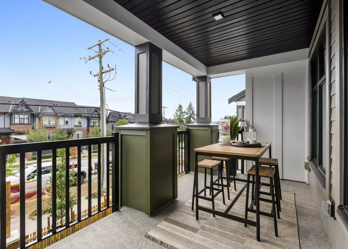 Welcome to VERSANT. A boutique collection of Modern Craftsman-inspired townhomes built by award-winning Infinity Properties. This MOVE IN READY 4-bed 3.5 bath+REC ROOM home features a spacious layout with main level entry. Premium finishes include custom cabinetry, quartz counter, SS app w/GAS cooktop+wall oven & entertaining island. Covered balcony off kitchen w/Gas BBQ outlet. Upper floor feat 3 bed incl SPACIOUS Primary w/spa inspired ensuite and dedicated laundry room. Lower level offers 4th bed, full bath and rec room with access to fully fenced yard. High eff gas furnace w/Heatpump and Rinnai water heater. Enjoy easy access to hiking trails, mtn biking routes+lakes. Only 10 minutes from the Skytrain, West Coast Express+Coquitlam City Centre Shopping+Amenities. Open Sat-Wed 12-5 PM.