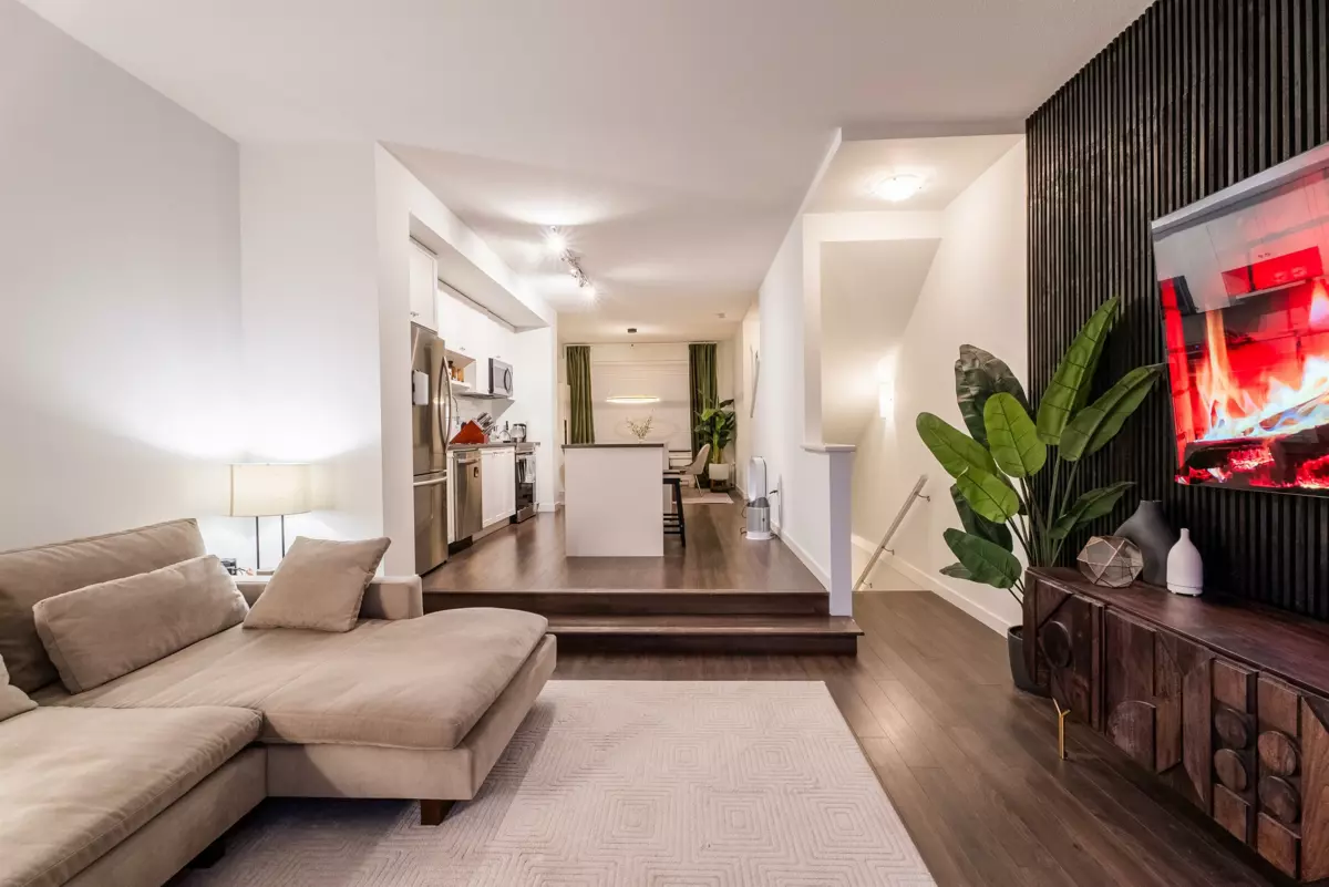 Pristine living in this south-facing, 4-bedroom 4-bath townhome by highly reputable builder, Dawson & Sawyer! The gourmet kitchen boasts quartz countertops, a spacious island, and a cozy dining area. Enjoy laminate flooring, designer carpet, soft-close cabinetry, and stainless steel appliances. The open-concept floor plan is bathed in natural light, with the living room extending to a large balcony, perfect for hosting summer BBQs. The master bedroom is generously sized, featuring a walk-in closet and luxurious ensuite. An additional bedroom and full bath on the lower level add convenience, along with a double garage and ample storage. Situated close to Costco, Bear Creek Park, and Surrey City Centre, you'll have easy access to dining, shopping, and transit. Call to book a private showing!