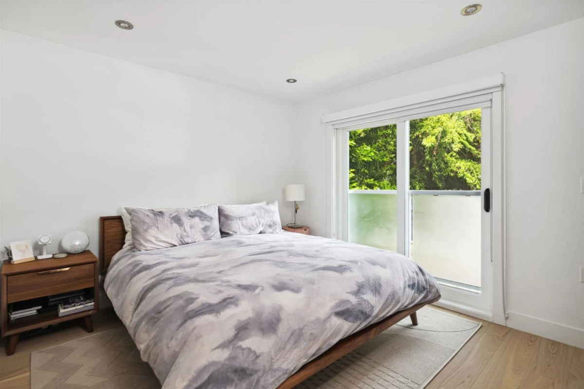 Beautifully designed back half-duplex that combines privacy & tranquility in a prime location; just 1 block from Commercial Dr! This thoughtfully designed home features a well-laid-out floor plan with soaring 10ft ceilings on the main. Upstairs, spacious primary bedroom with walk-in closet and ensuite bathroom, along with second bedroom and full bathroom. Top floor is perfect for home office, family room, or 3rd bedroom and opens to an amazing rooftop terrace—great for summer entertaining! High-end features include hardwood floor, radiant in-floor heating, double blackout blinds in bedrooms, on-demand hot water. Kitchen boasts a large island and full-size appliances, including a five-burner gas cooktop. Xtra: BBQ gas hookup & motorized gate. Fantastic location! OH Saturday Aug 30th, 2-4pm