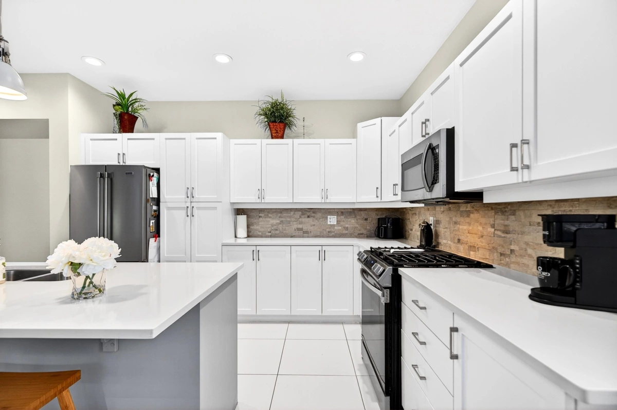 Elevated rancher living in Dorado, a coveted gated community steps from Meadow Gardens Golf Course. This home has been thoughtfully reimagined with high-end renovations & timeless finishes. Designed for convenience & accessibility, it offers step-free access via an aggregate ramp to the front door & an open layout ideal for daily living. Stylish kitchen anchors the home with soaring ceilings & stainless steel appliances, creating a welcoming space. Step into the private backyard, where summer evenings are enjoyed. Landscaping & hardscaping are built to last & supported by irrigation for ease of maintenance. Large primary bdrm retreat incl/ walk-in closet & a spacious, mobility-friendly 4-piece bathroom ensuite. A front den provides flexible space for work or extra bdrm. Welcome to Dorado!
