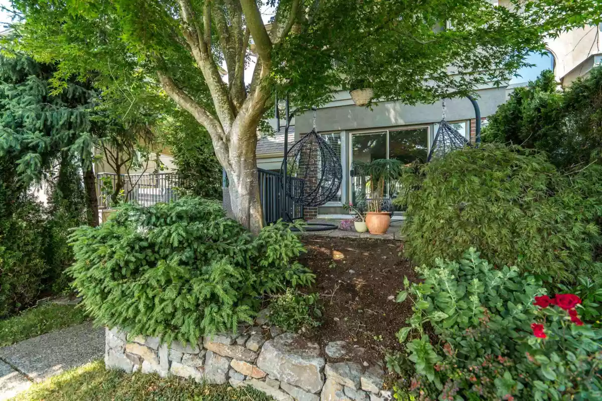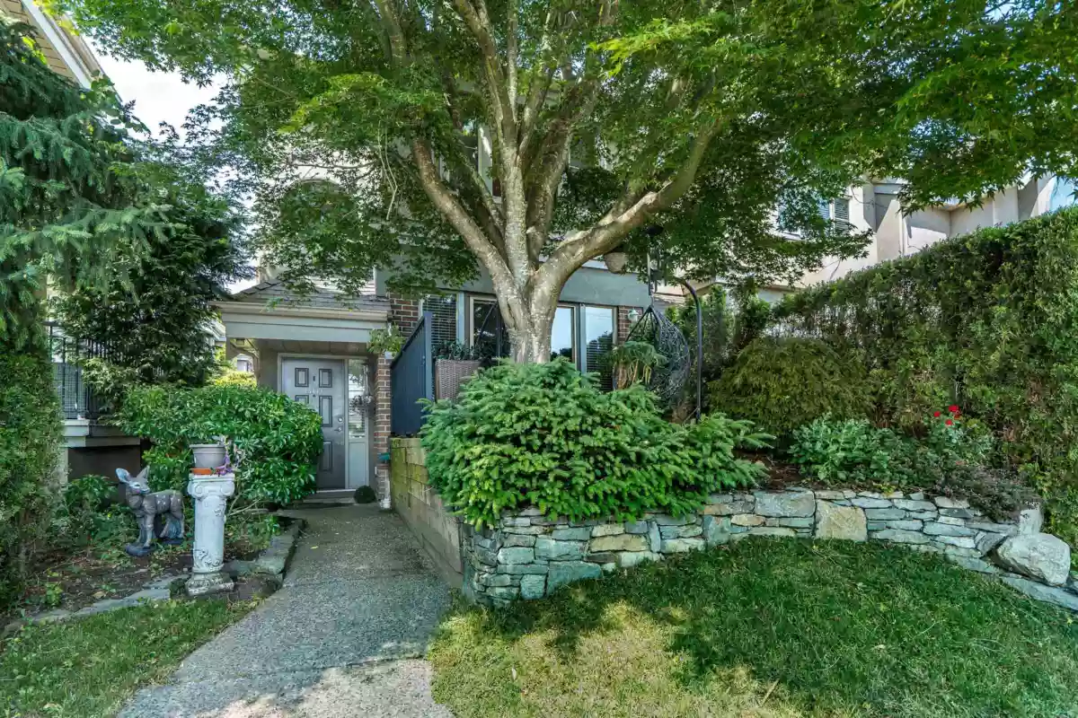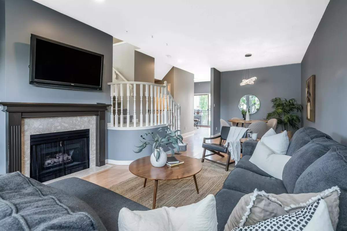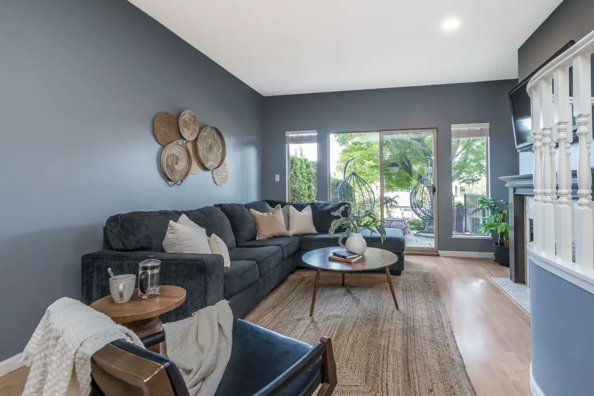 Welcome to The Courtyards, a beautifully maintained gated community in the heart of White Rock. This 3-bed, 3-bath end-unit townhome features a bright white kitchen with quartz counters and a window over the sink, flowing into the dining area and out to a private patio. The cozy family room includes a gas fireplace and sliding glass doors to a landscaped yard, perfect for morning coffee or evening BBQs. Downstairs, the media room is customized as a vibrant Tiki bar or can double as a 4th bedroom. Enjoy a private front entrance off Russell Ave and a full-sized double garage on the gated side. Walk to shops, restaurants, transit, and medical services. Pet friendly: 2 dogs or 2 cats. Home is where your Storey begins!