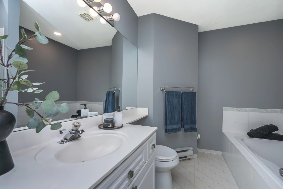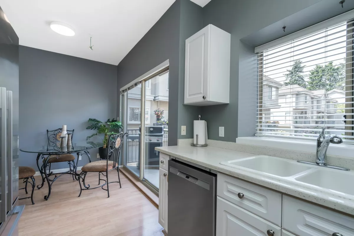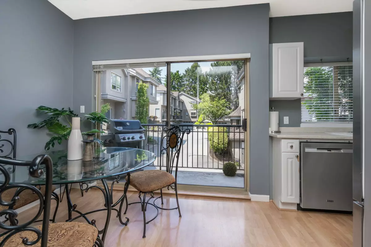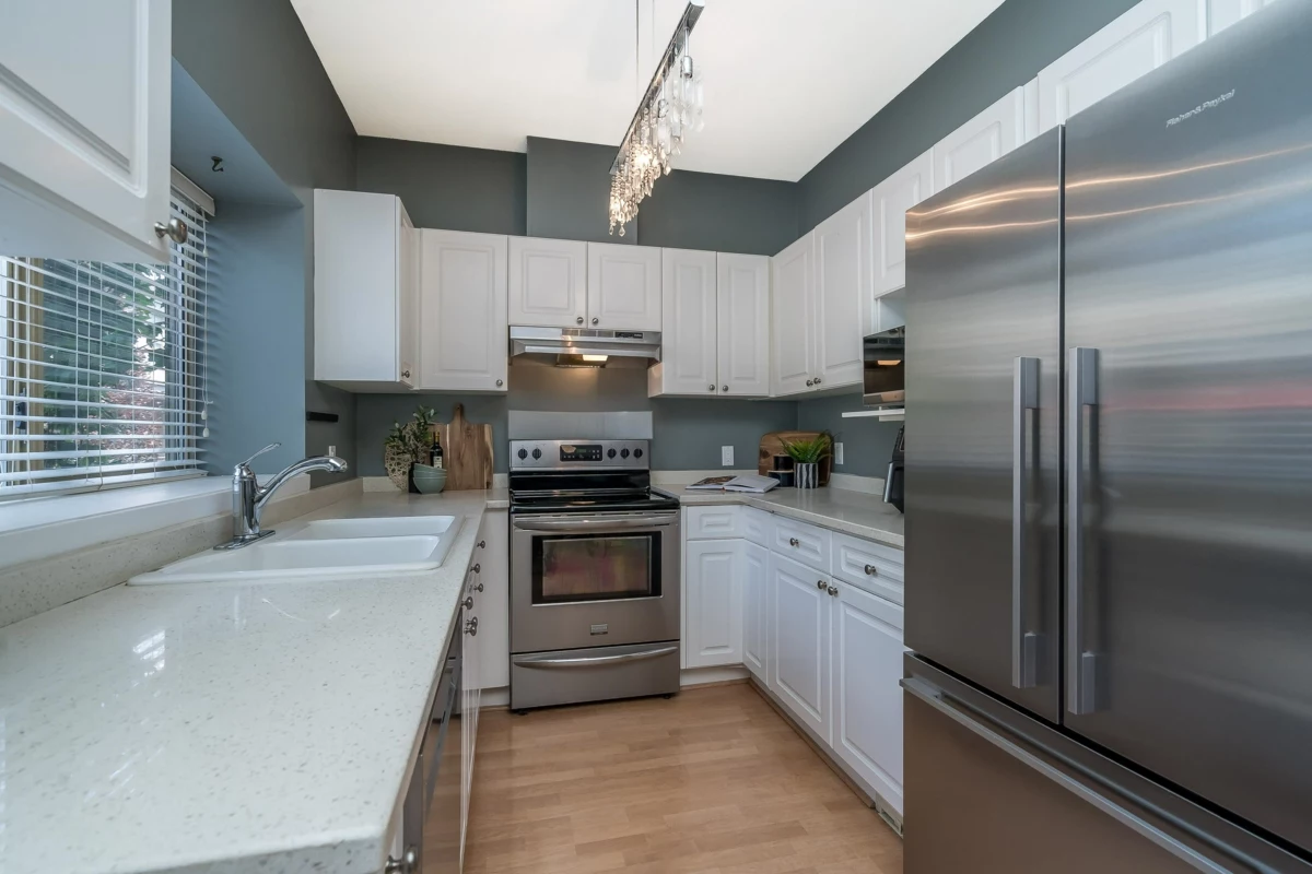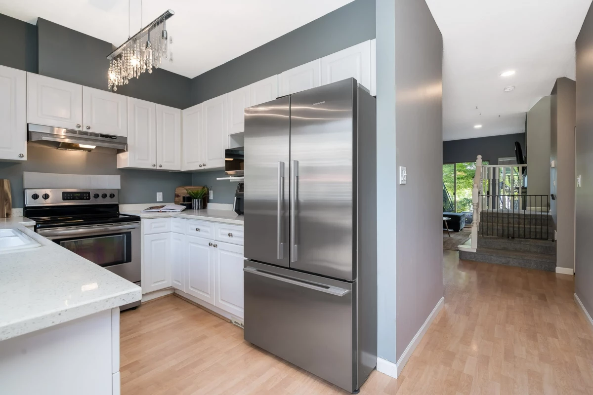 Welcome to The Courtyards, a beautifully maintained gated community in the heart of White Rock. This 3-bed, 3-bath end-unit townhome features a bright white kitchen with quartz counters and a window over the sink, flowing into the dining area and out to a private patio. The cozy family room includes a gas fireplace and sliding glass doors to a landscaped yard, perfect for morning coffee or evening BBQs. Downstairs, the media room is customized as a vibrant Tiki bar or can double as a 4th bedroom. Enjoy a private front entrance off Russell Ave and a full-sized double garage on the gated side. Walk to shops, restaurants, transit, and medical services. Pet friendly: 2 dogs or 2 cats. Home is where your Storey begins!